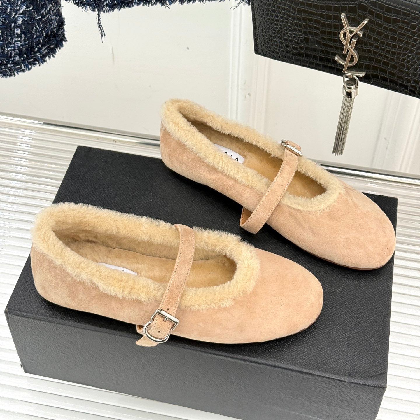 ALAIA Le Teckel Ballet Flats White Sheepskin 468730