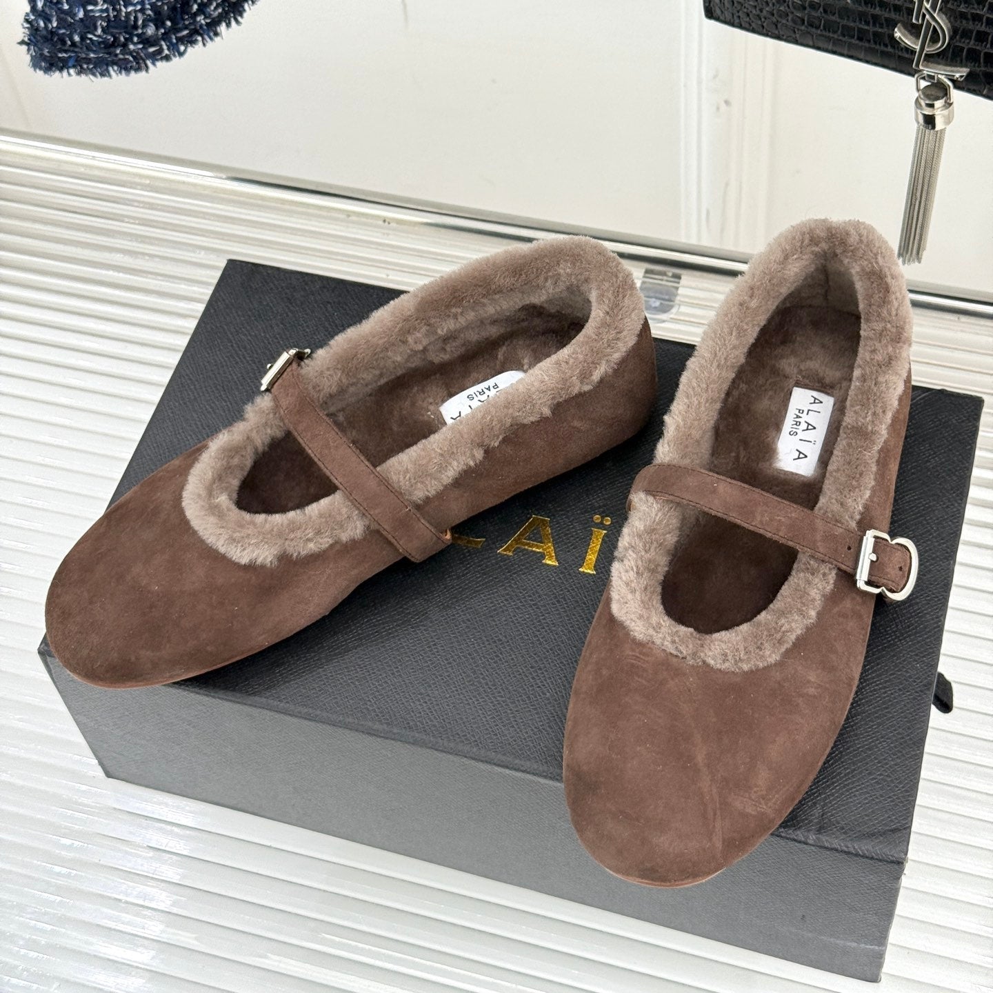 ALAIA Le Teckel Ballet Flats Dark Brown Suede 468728