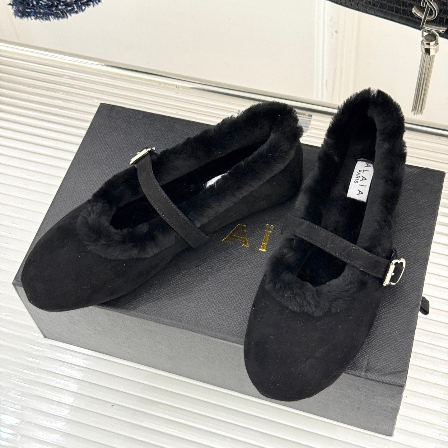 ALAIA Le Teckel Ballet Flats Black Sheepskin 468731