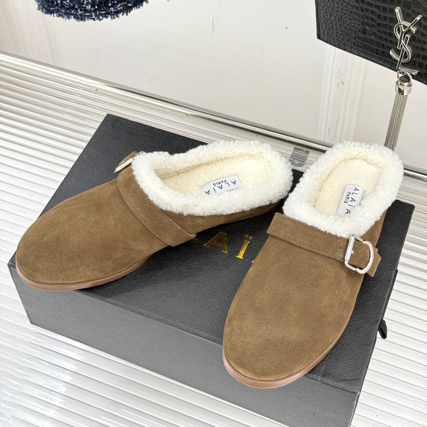 Alaia 25WF slippers belt buckle khaki brown suede wool 472227