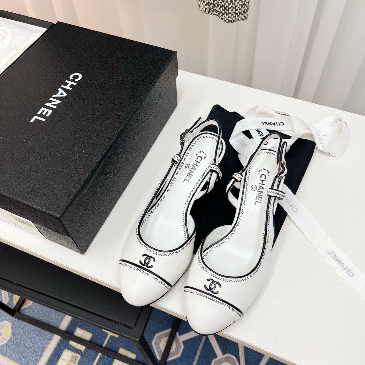 CC Slingback Heels With Black Contrast Stitching White Lambskin 476712