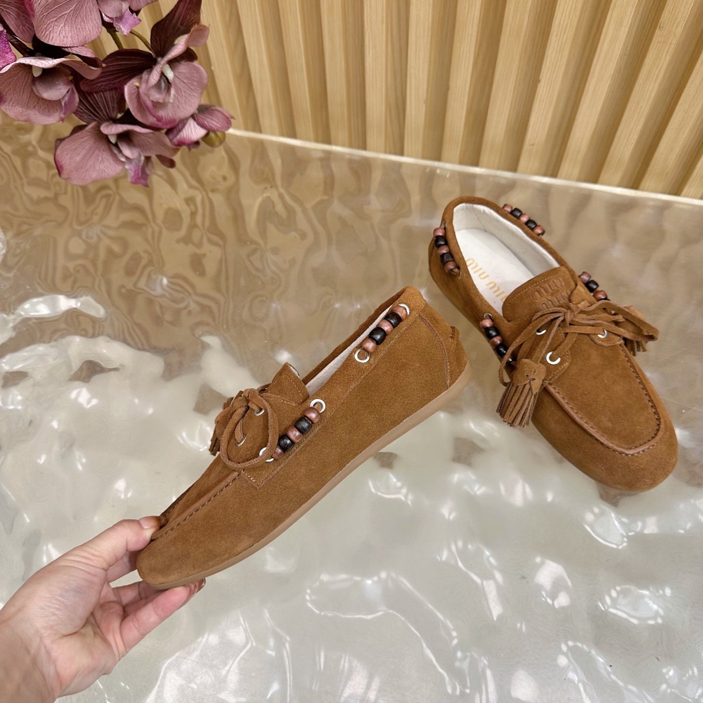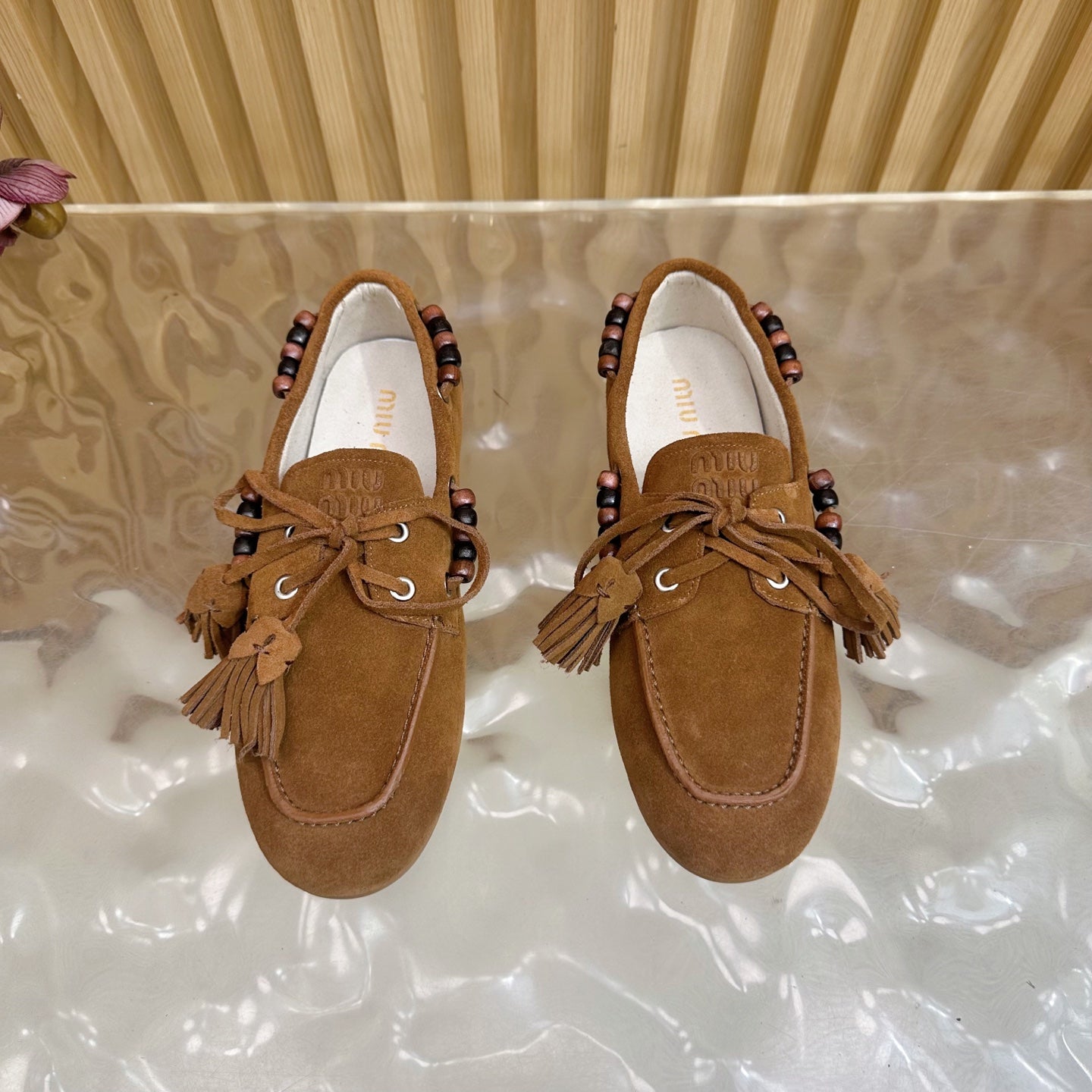 Miu Laces Eyelet Flat Loafer Beige Suede 498166