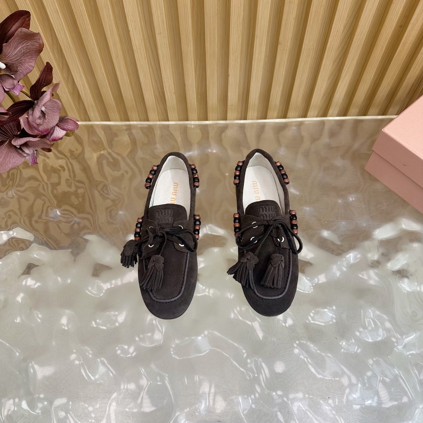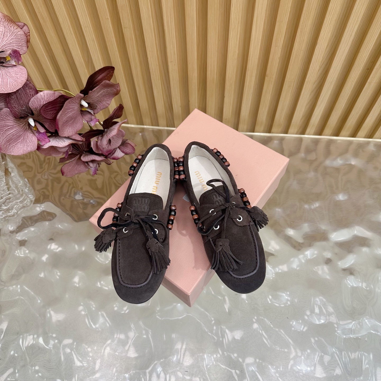 Miu Laces Eyelet Flat Loafer Deep Brown Suede 498167