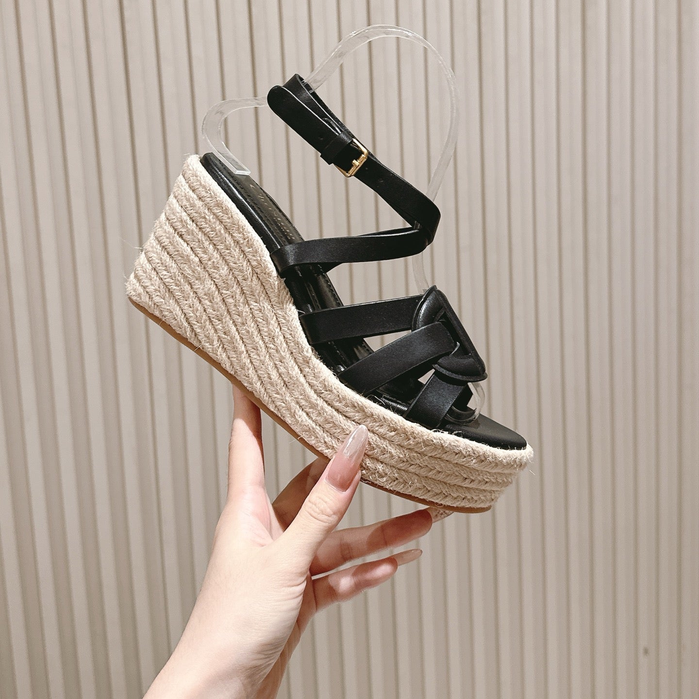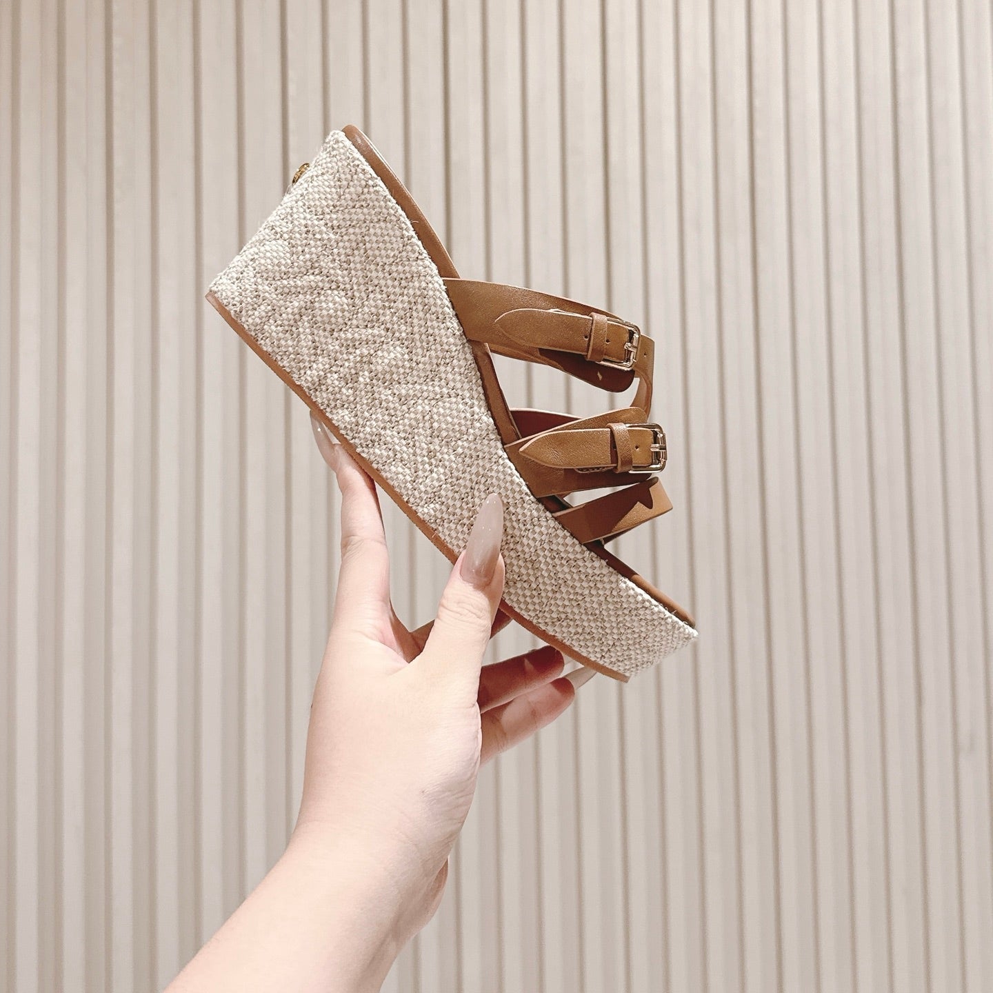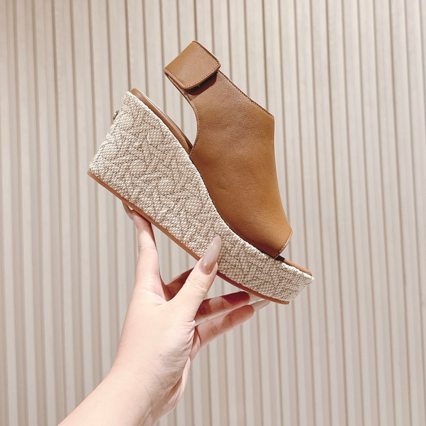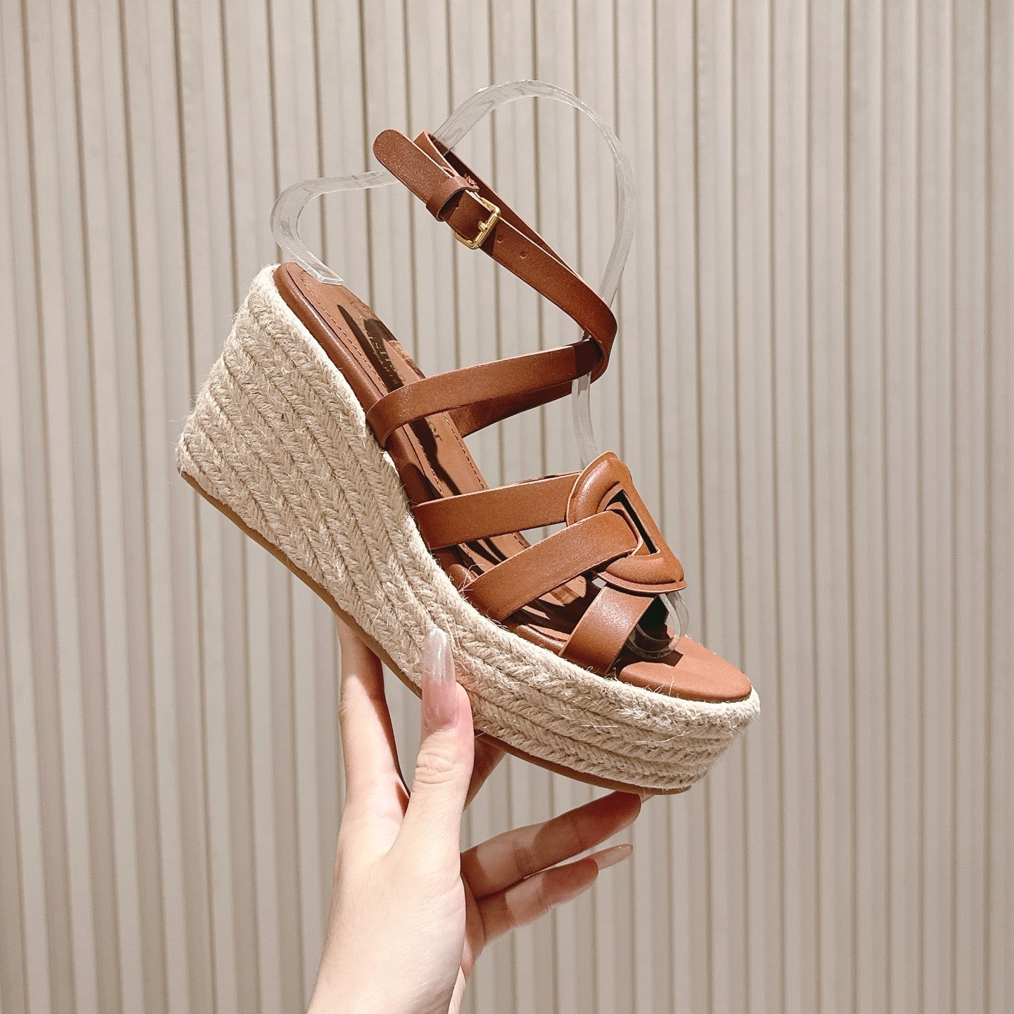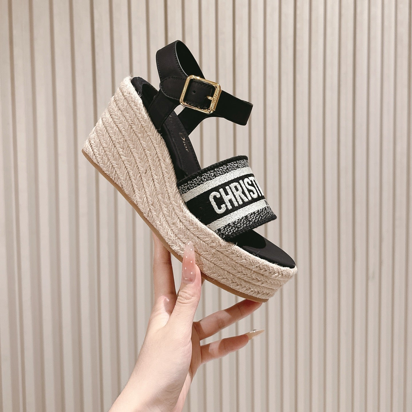 CD Wedge Hemp Sandal 85mm Brown Beige Lambskin 483083