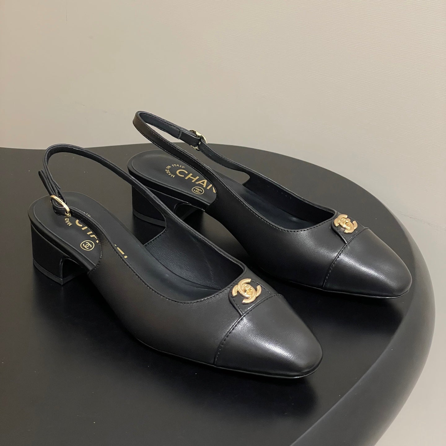 Chanel 25 Slingback 50mm Black Lambskin 473218