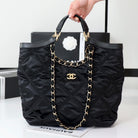 CC 22P Maxi Shopping Bag Black Nylon with Grosgrain