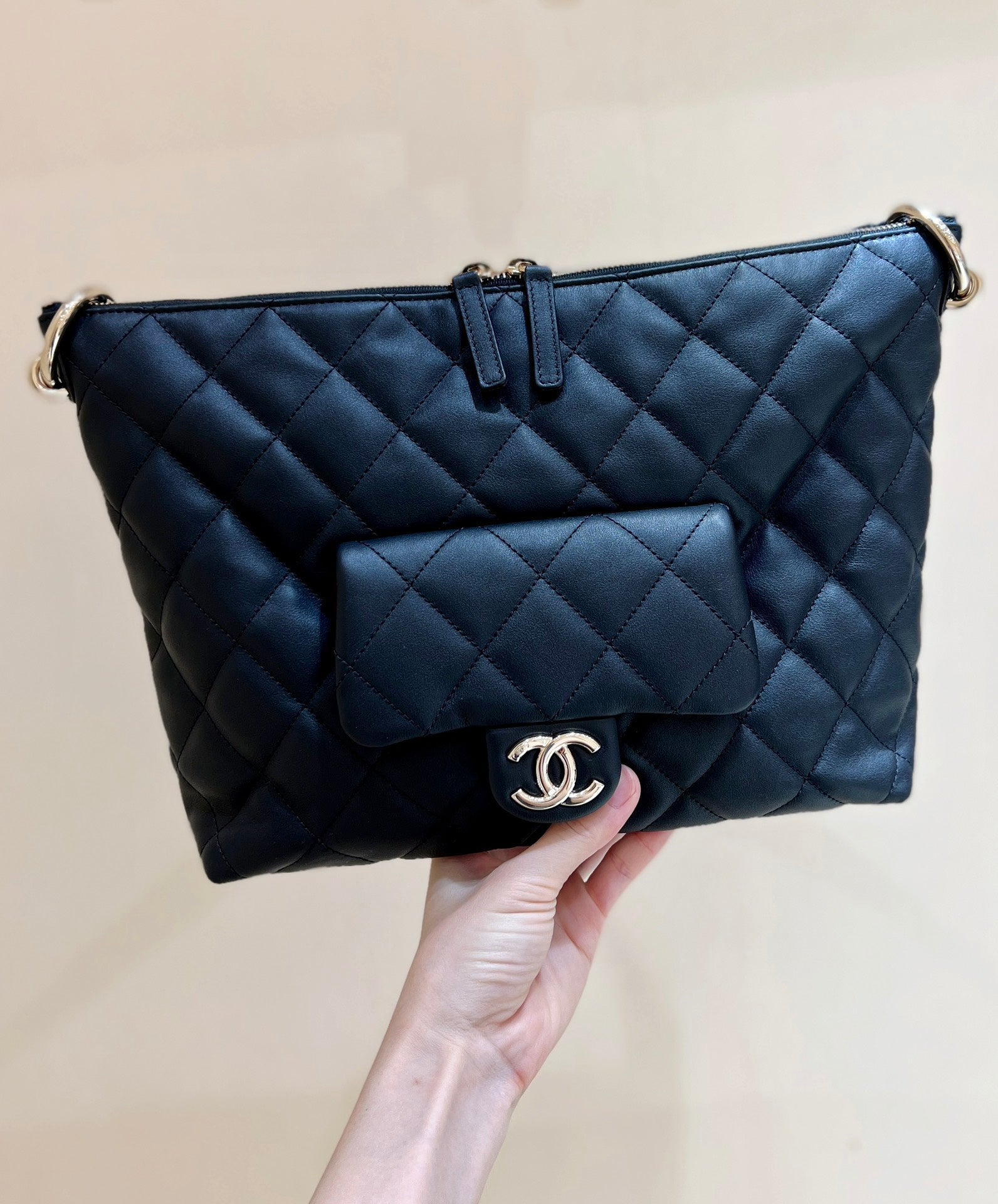 CC 23B Maxi Hobo 29.5cm Black Cowhide Light GHW