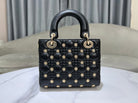 CD Lady Dior Black Cannage Lambskin with Gold-Finish Butterfly Studs