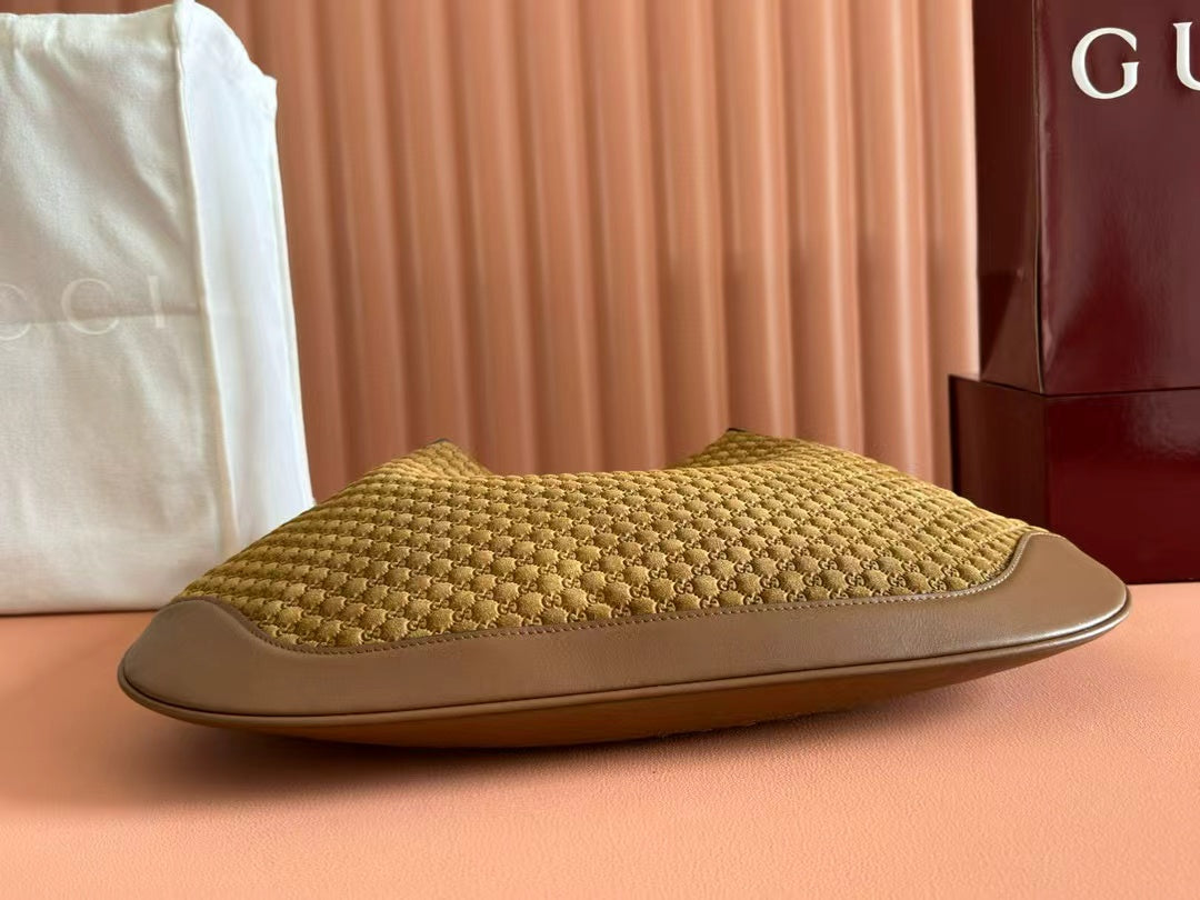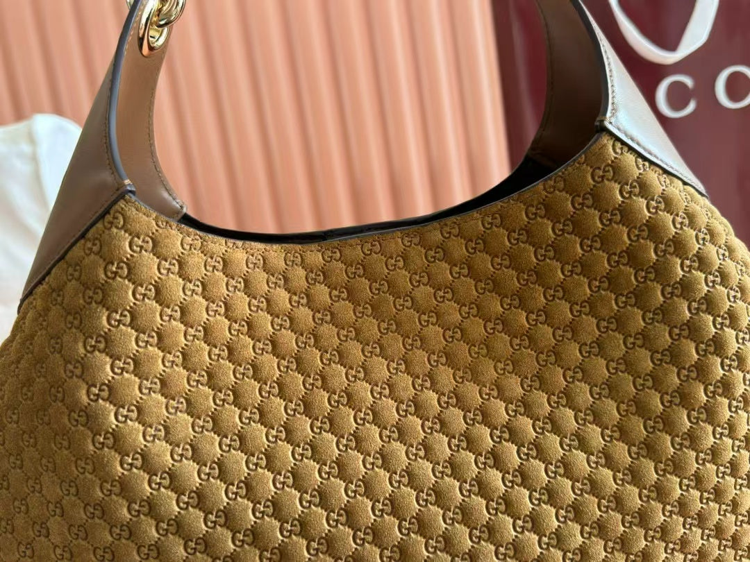 Gucci B Medium Shoulder Bag Brown Suede Leather
