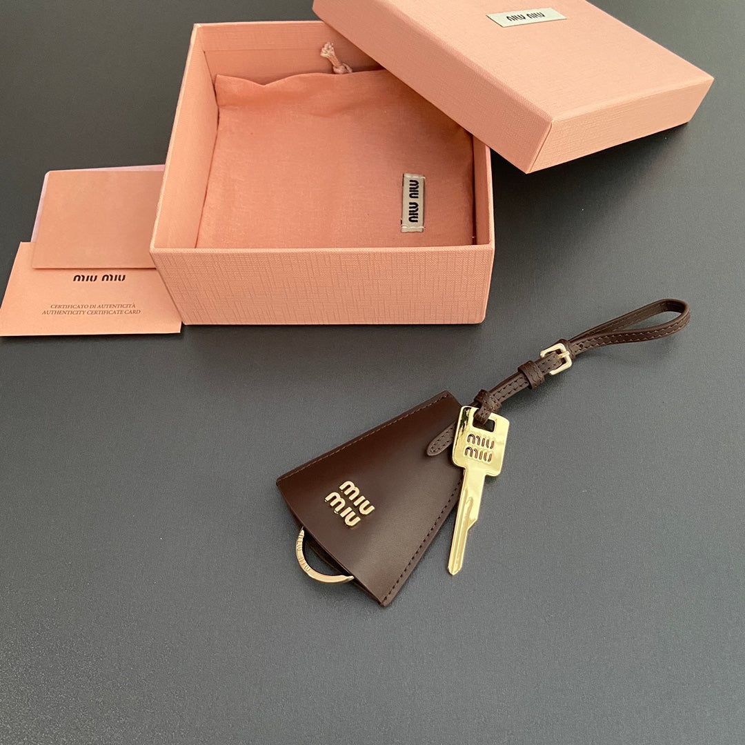 Leather Bag Charm With Key Chocolate Calfskin 240337