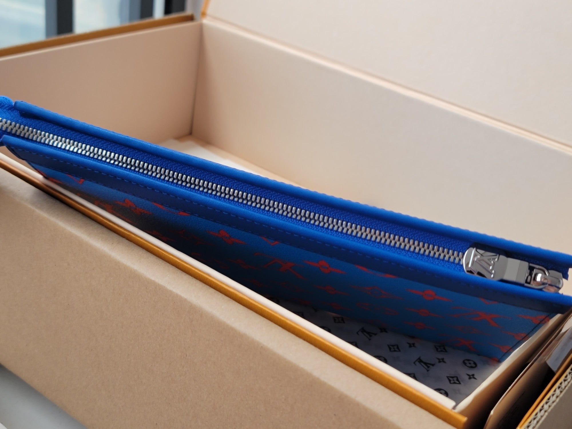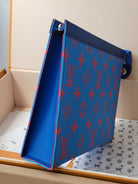 LV M14692 Pochette Voyage Blue Red Monogram Glow Canvas & Cowhide