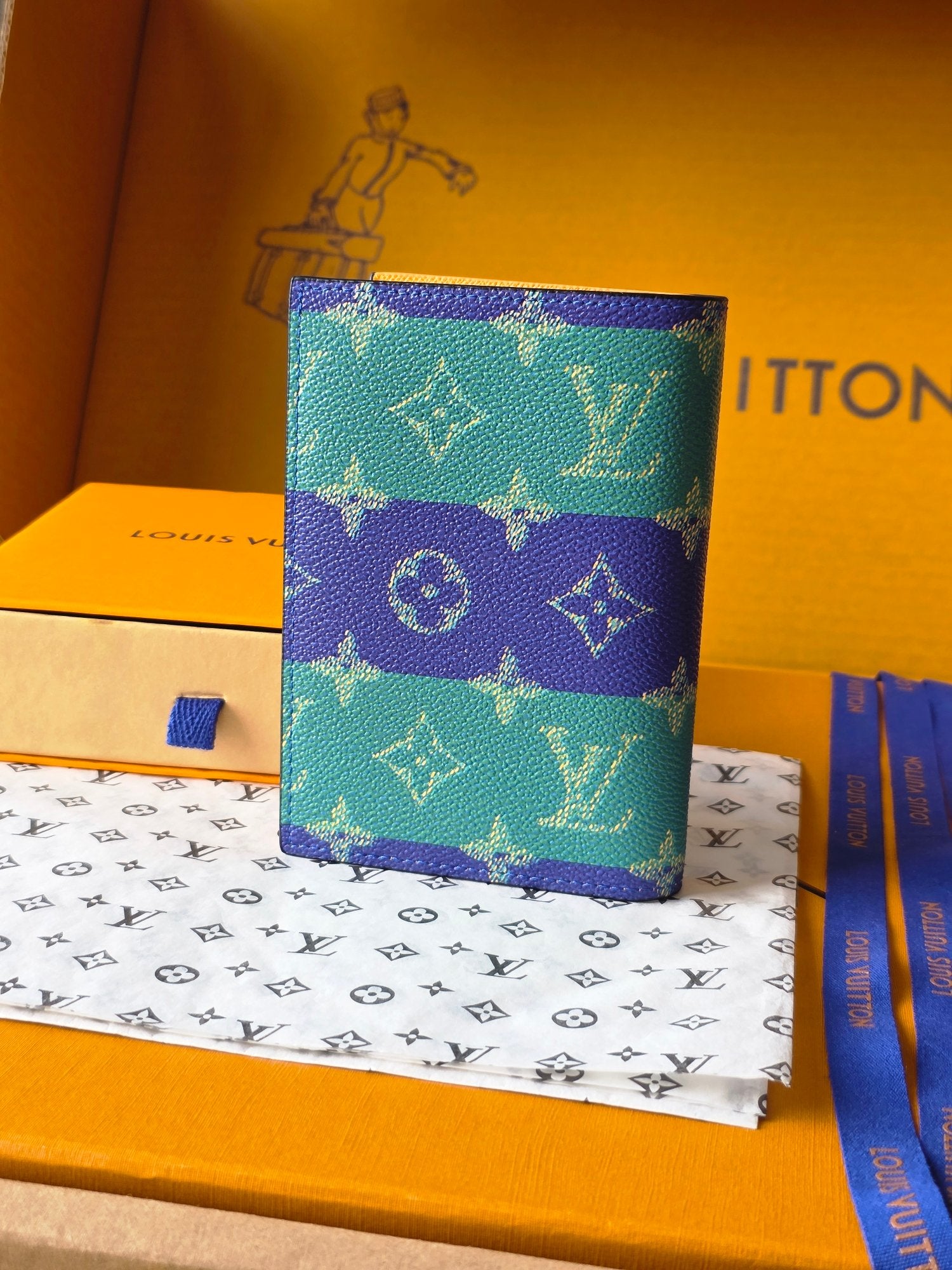 LV M25793 Passport Cover Dark Blue Teal Green Cowhide