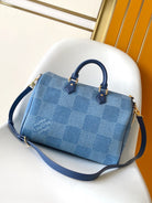 LV Speedy 30 Bandoulière Blue Cotton with 3D Damier Denim GHW