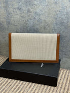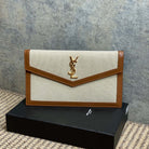 YSL 22s Uptown Pouch Clutch Bag Beige Brown Canvas GHW