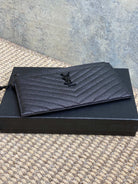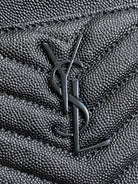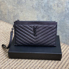 YSL Black Hardware Logo Zipper Clutch 23cm Black Caviar Cowhide