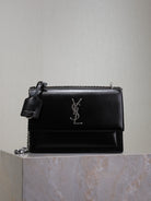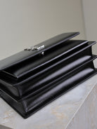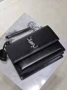 YSL Medium Sunset Shoulder Bag 22cm Black Cowhide Sliver HW