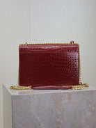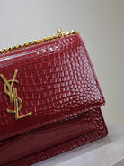 YSL Medium Sunset Shoulder Bag 22cm Burgundy Crocodile Pattern Leather