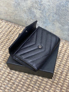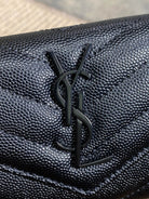 YSL Monogram Card Flap Wallet 13.5cm All Black Caviar Cowhide