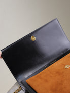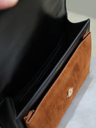 YSL Sunset Handbags 25cm Black Brown Cowhide Suede