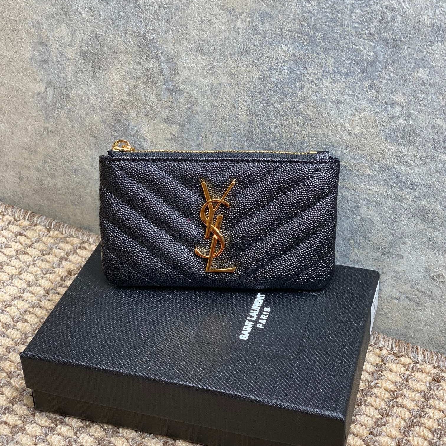 YSL Gold Hardware Logo Zipper Clutch 23cm Black Caviar Cowhide