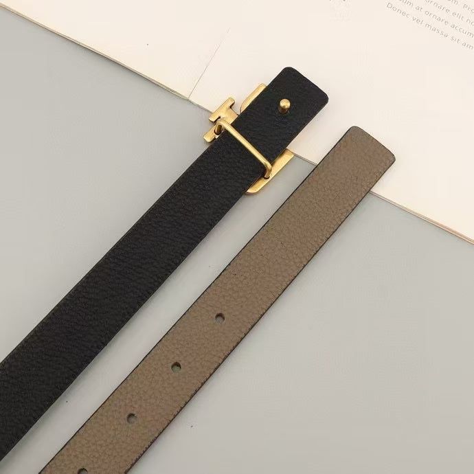 The Bold Edition Belt 30mm Brown White Calfskin Gold Buckle