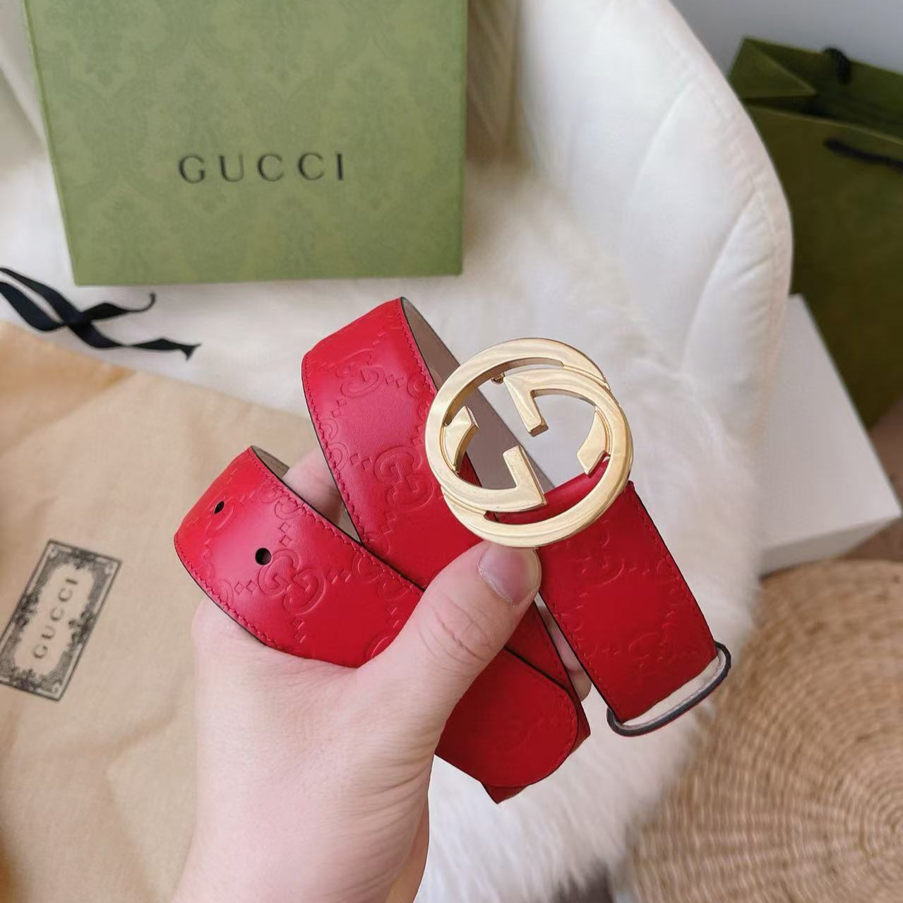 GG Belt Guccissima Interlocking G Buckle Red