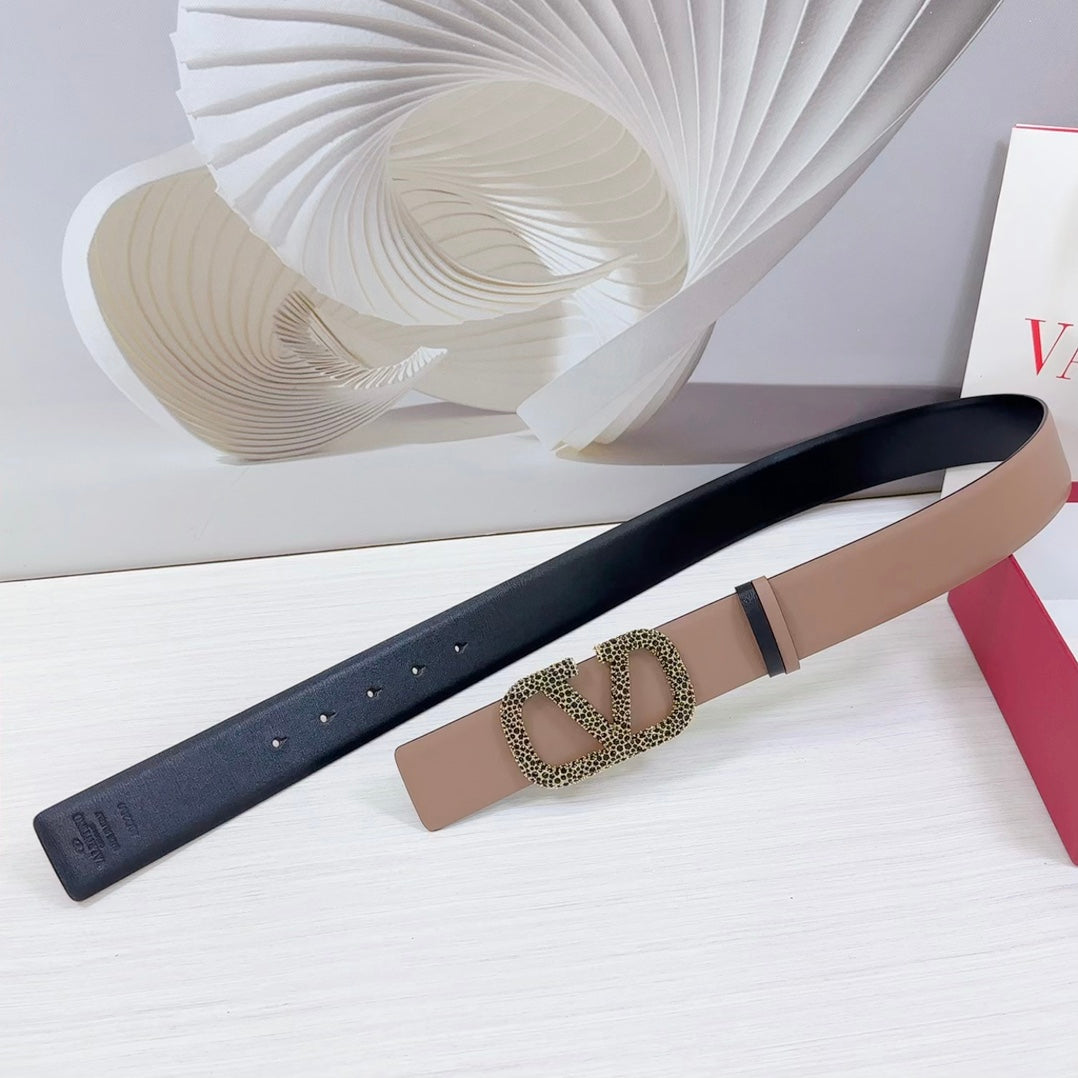VLOGO SIGNATURE REVERSIBLE BELT 40MM ROSE BLACK GOLD CALFSKIN GOLD PEARL BUCKLE