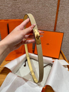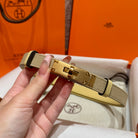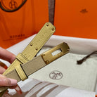 HM Kelly Belt 18mm Beige Canvas Epsom Leather Gold Buckle