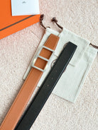 HM Silver Buckle Belt 38mm Brown Black Leather 187556