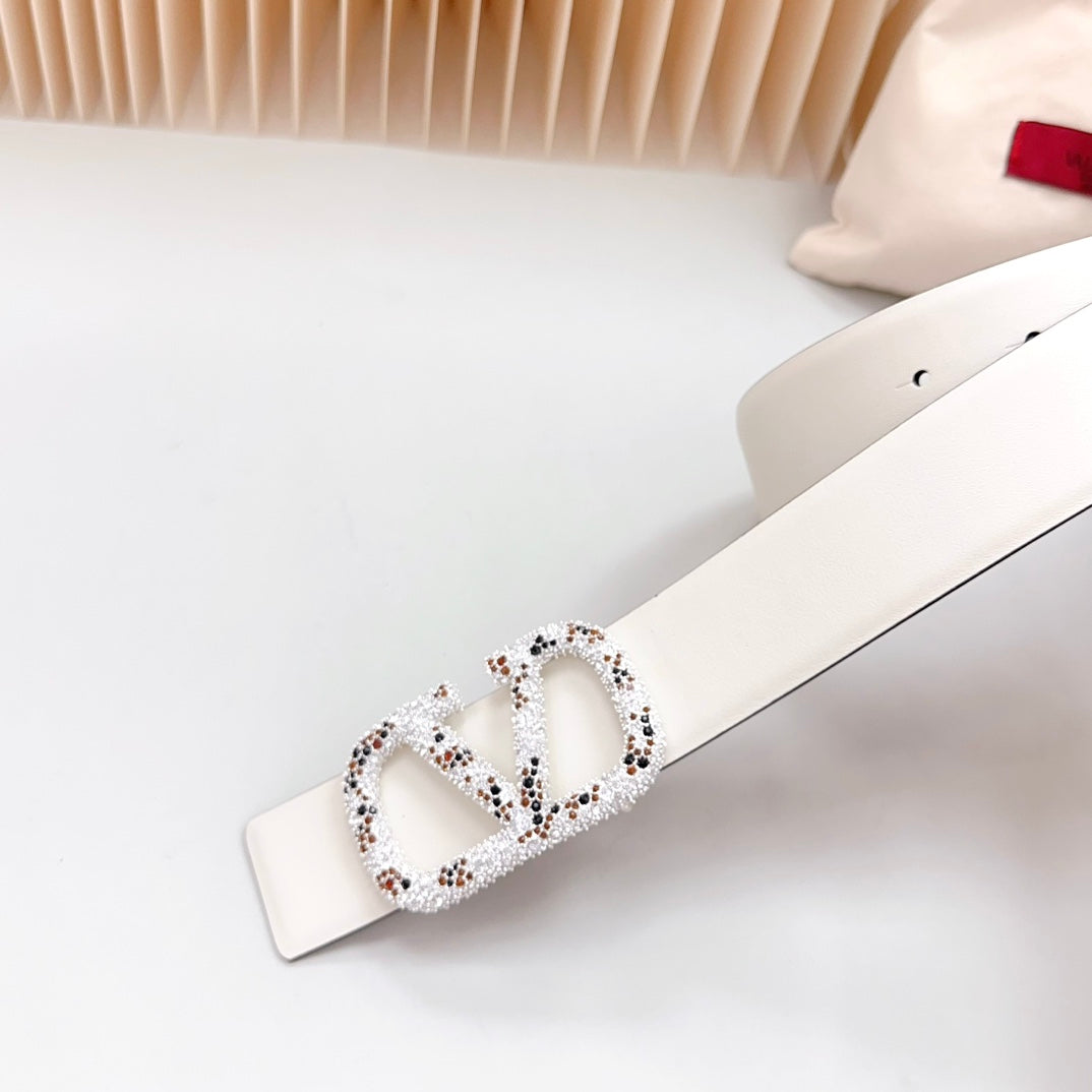 Vlogo Brown Black White Stone Silver Buckle Belt 40mm Wine Beige Leather