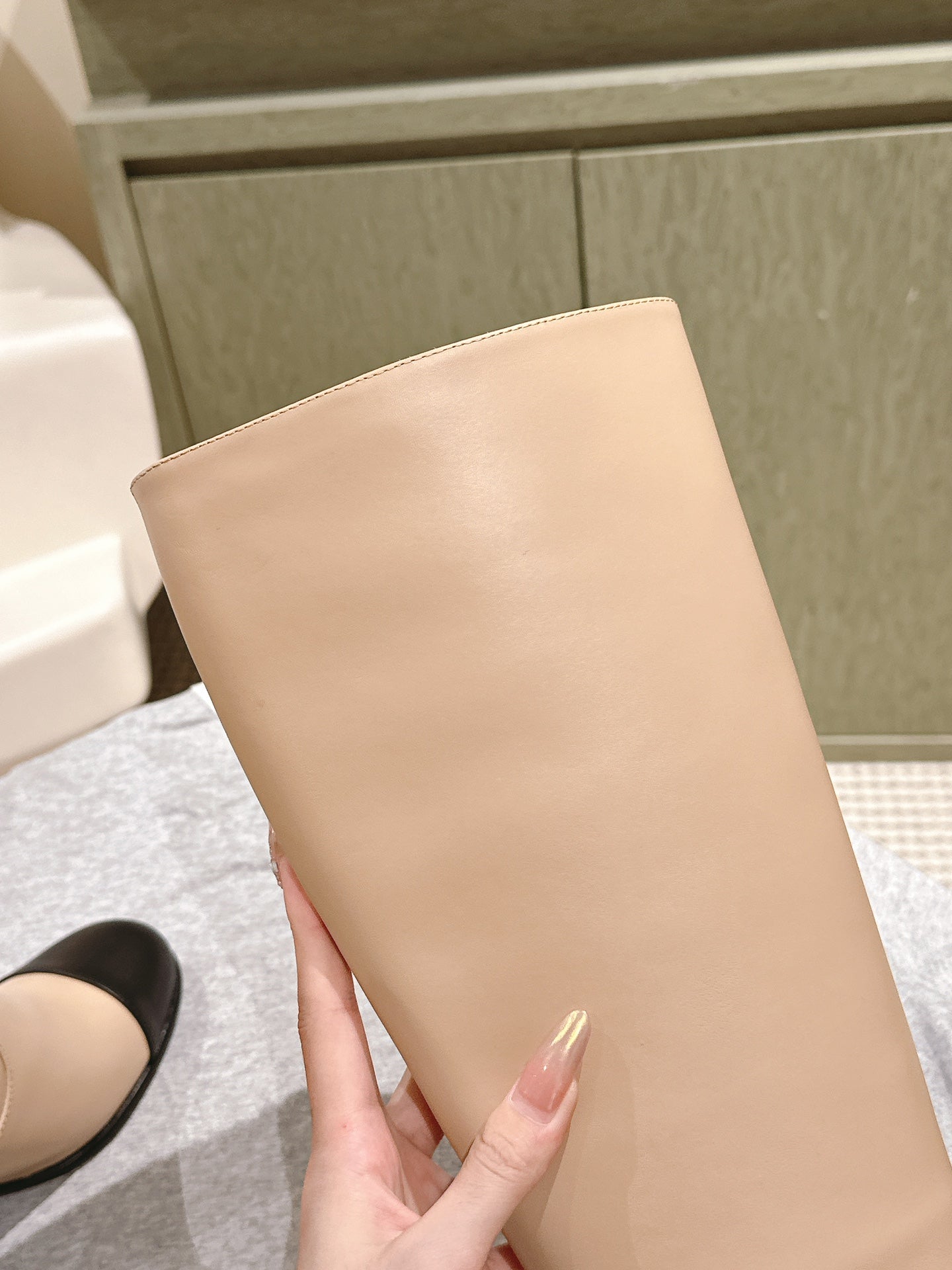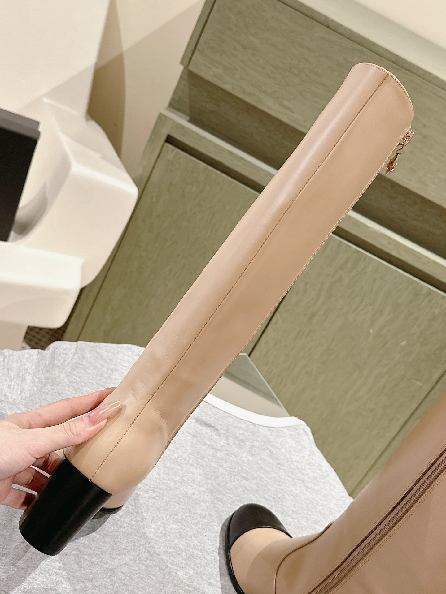 CC 24 FW Knee-High Boots 70mm Beige Black Cowhide 447188
