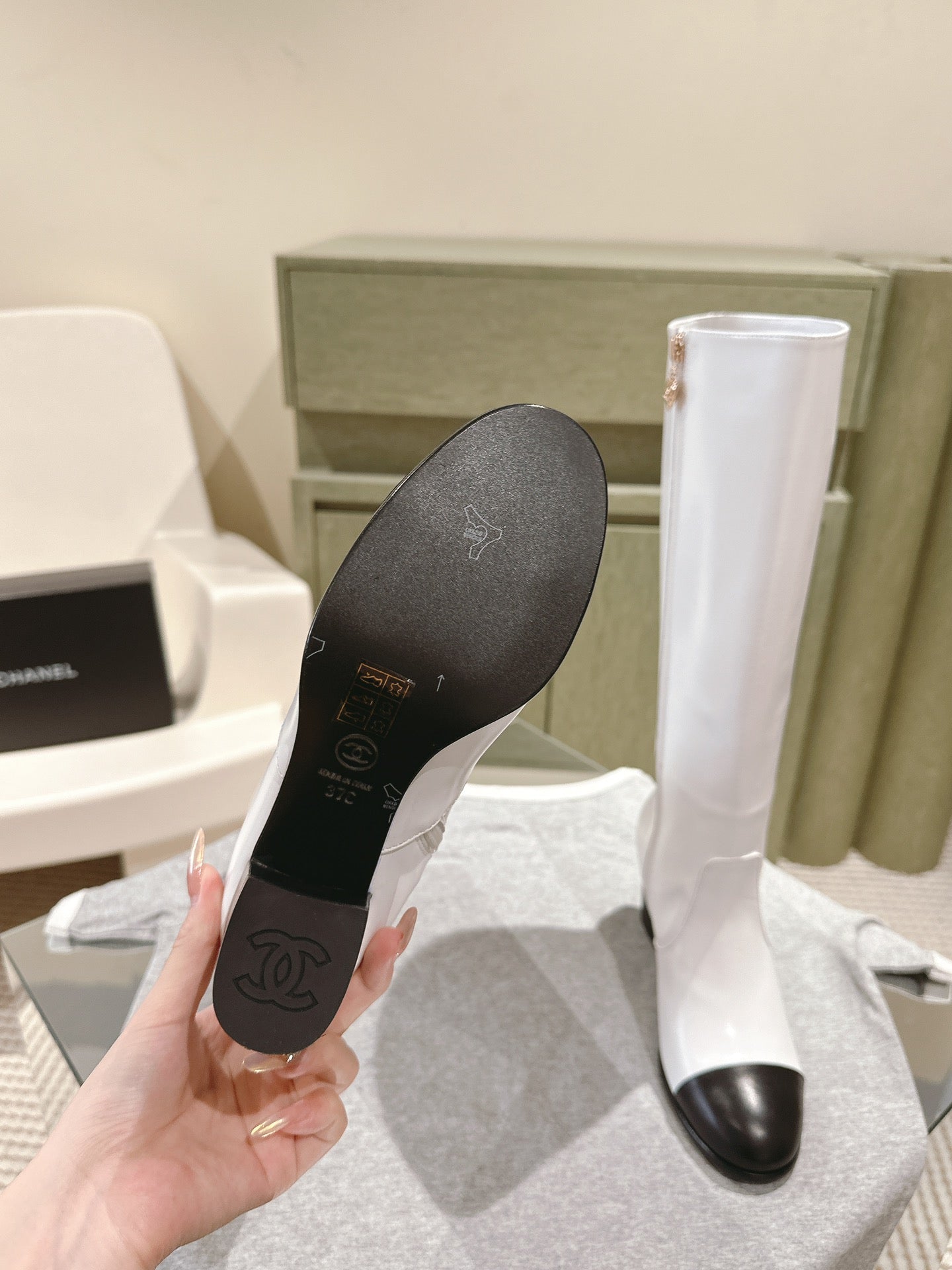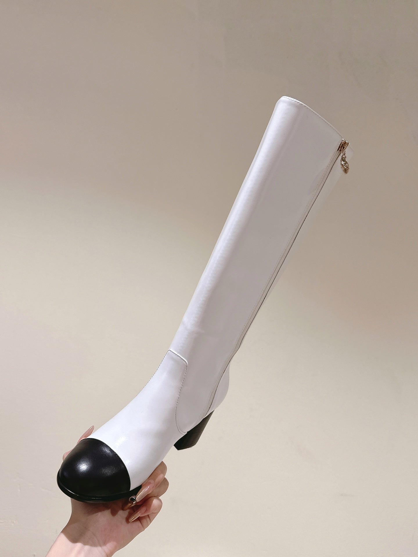 CC 24 FW Knee-High Boots 70mm Black White Cowhide 447191