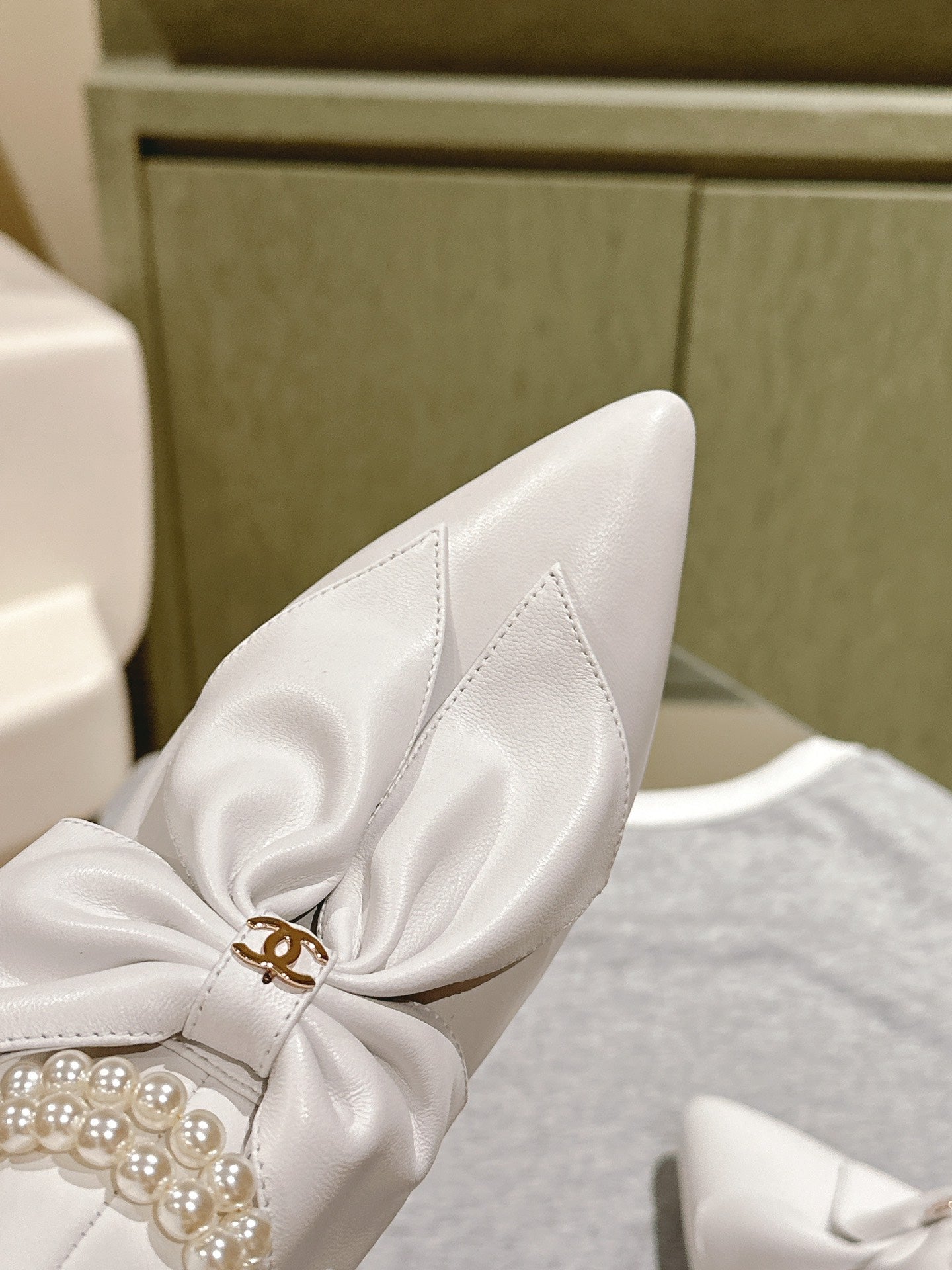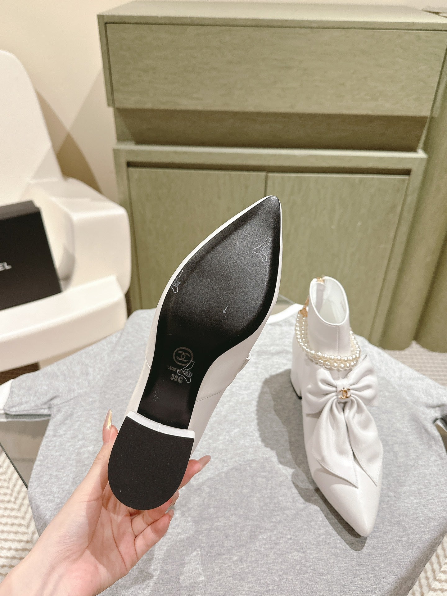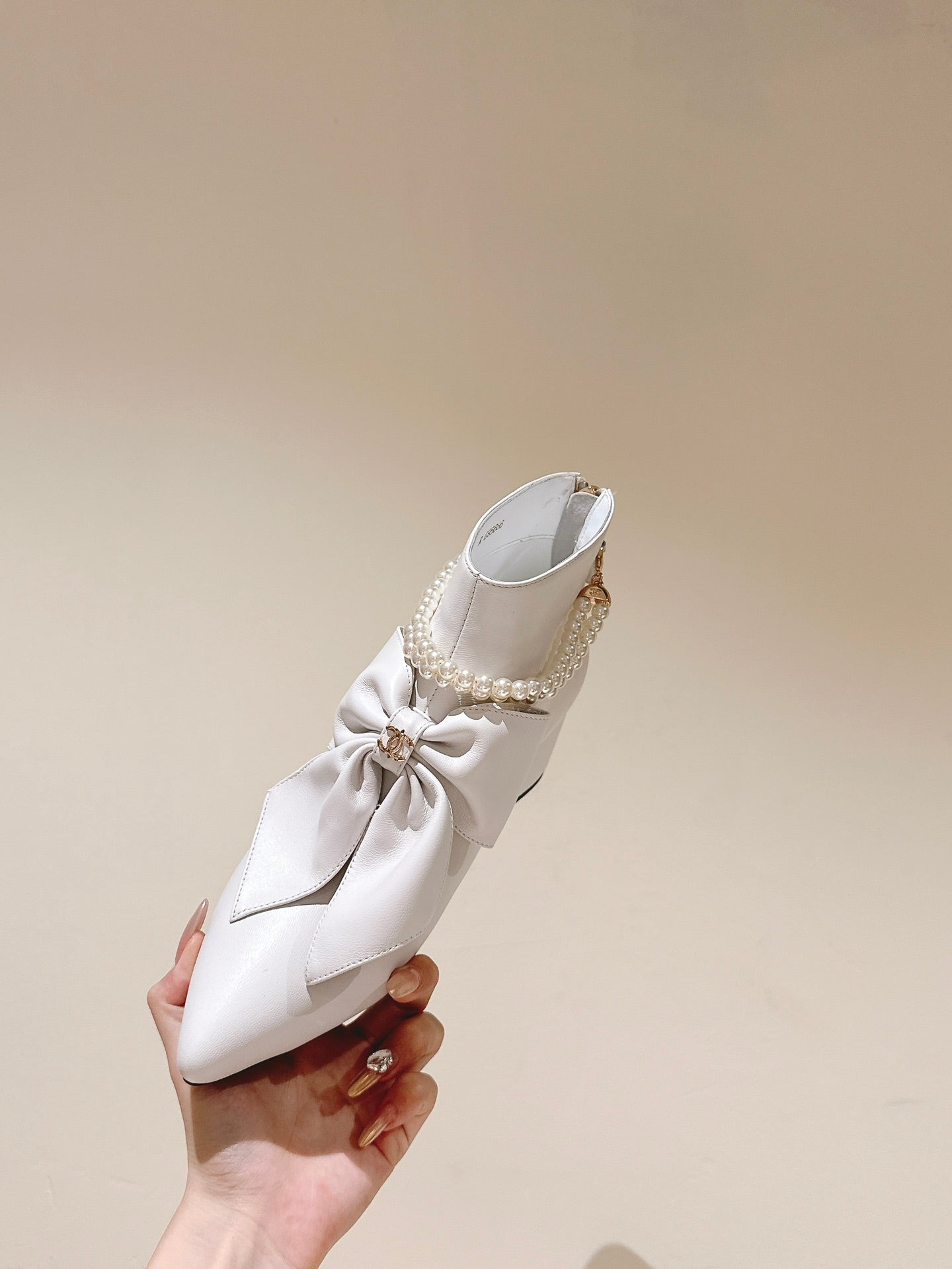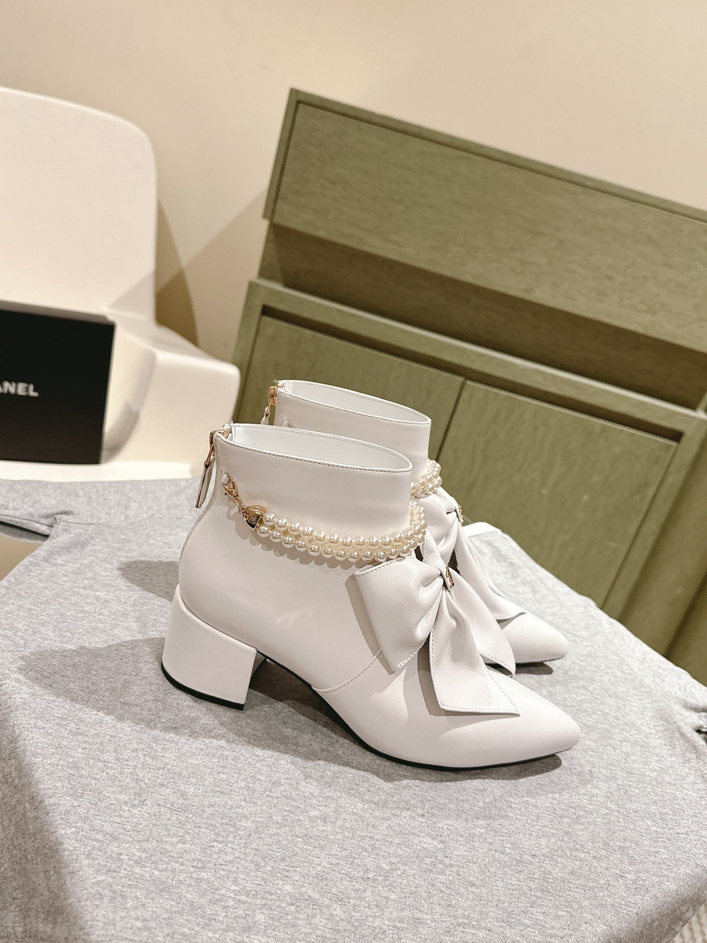 CC 24A Pearl Bow Ankle Boots 65mm White Sheepskin 447470