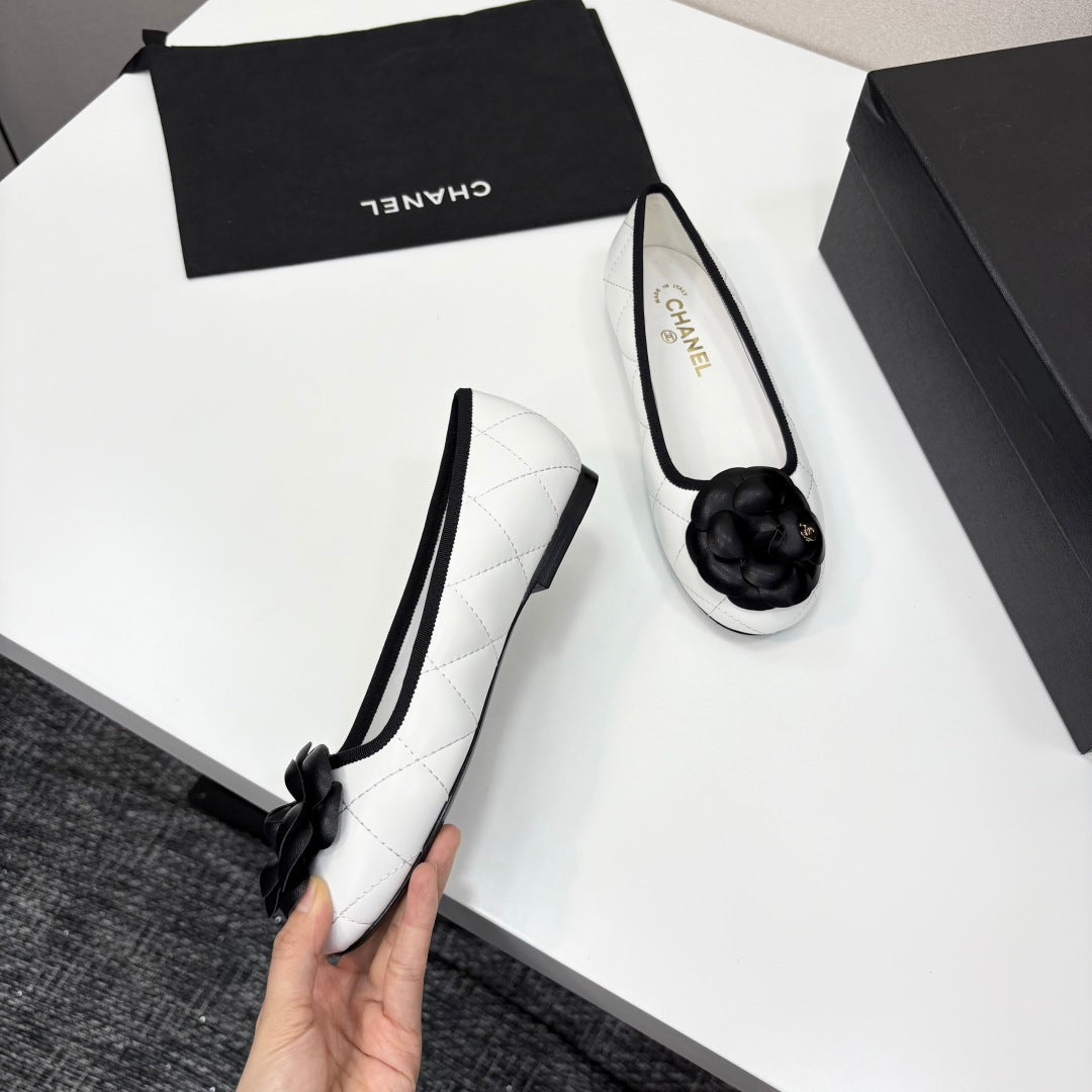 CC 25 Ballet Flat Flower White Quilted Calfskin