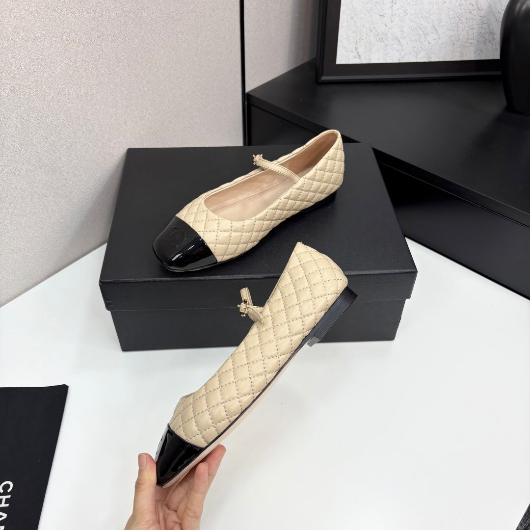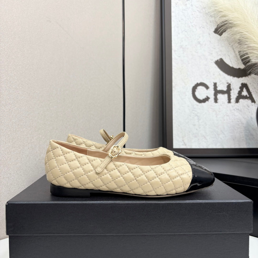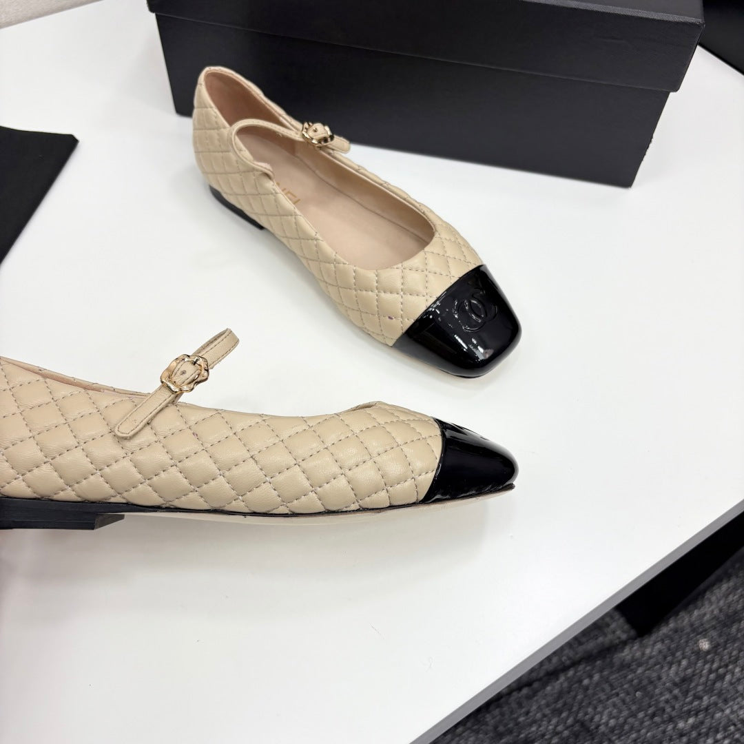 CC 25 Cap-Toe Quilted Mary Janes Beige Sheepskin 352461