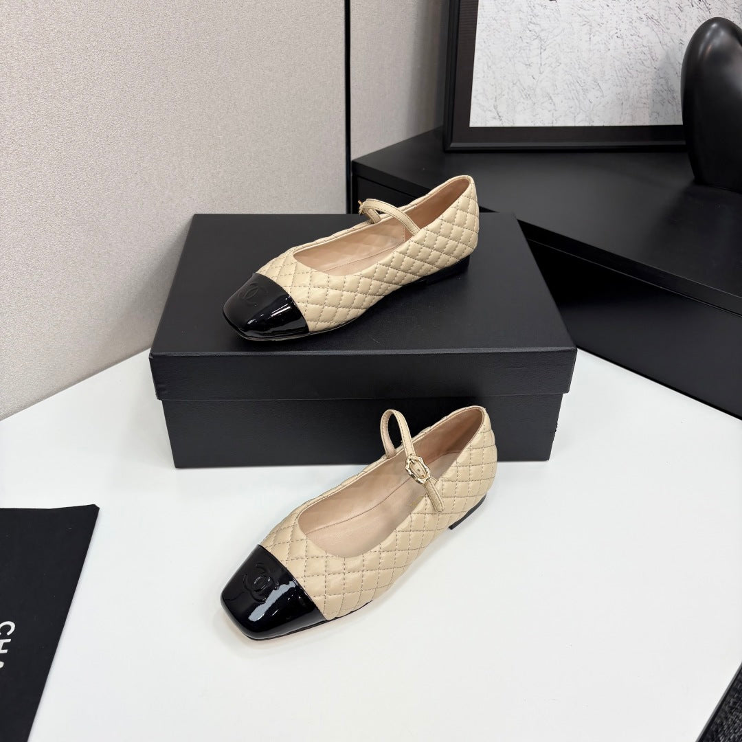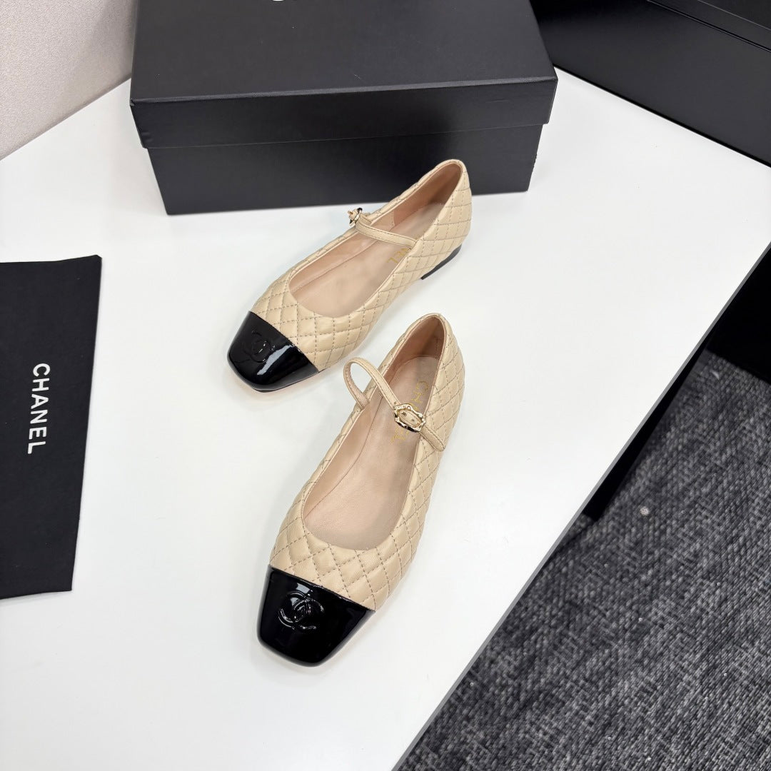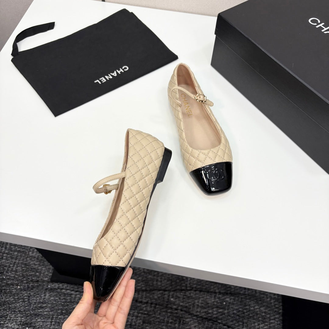 CC 25 Cap-Toe Quilted Mary Janes Beige Sheepskin 352461