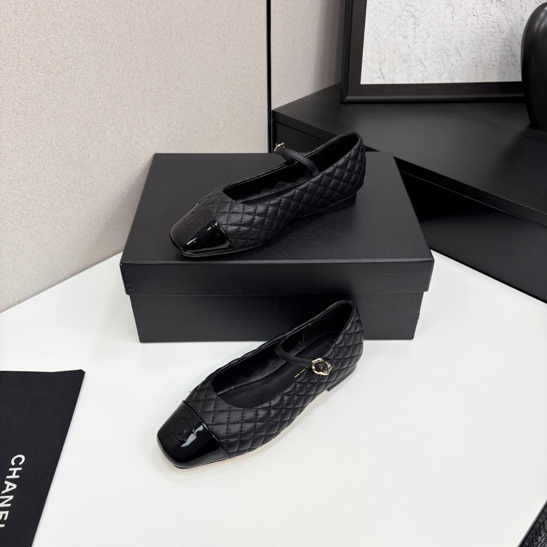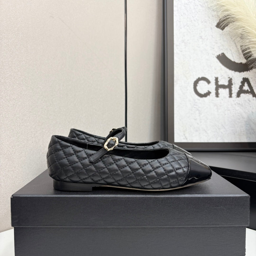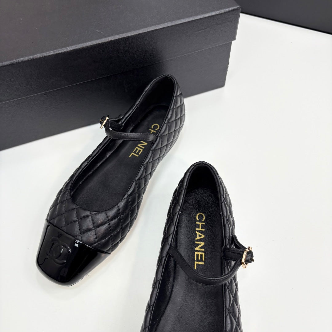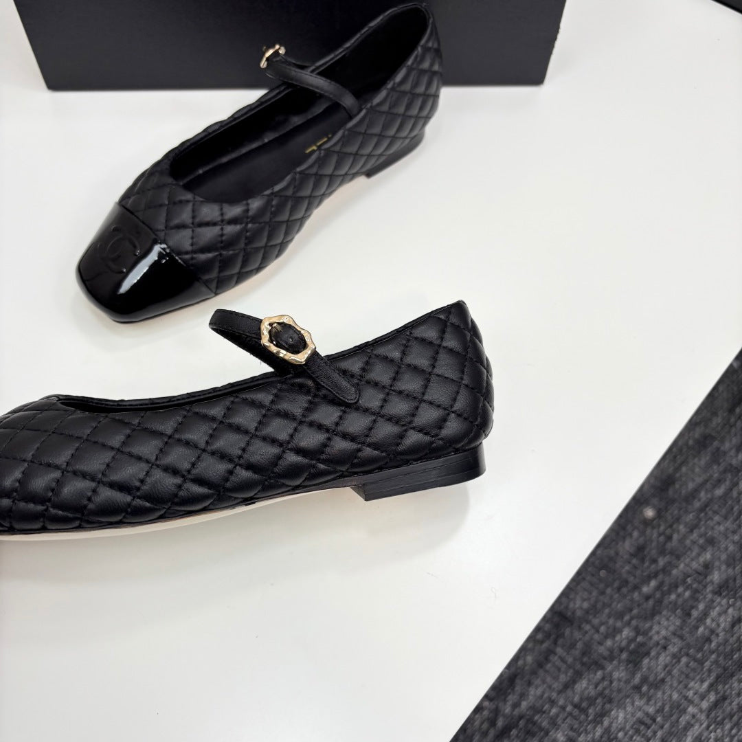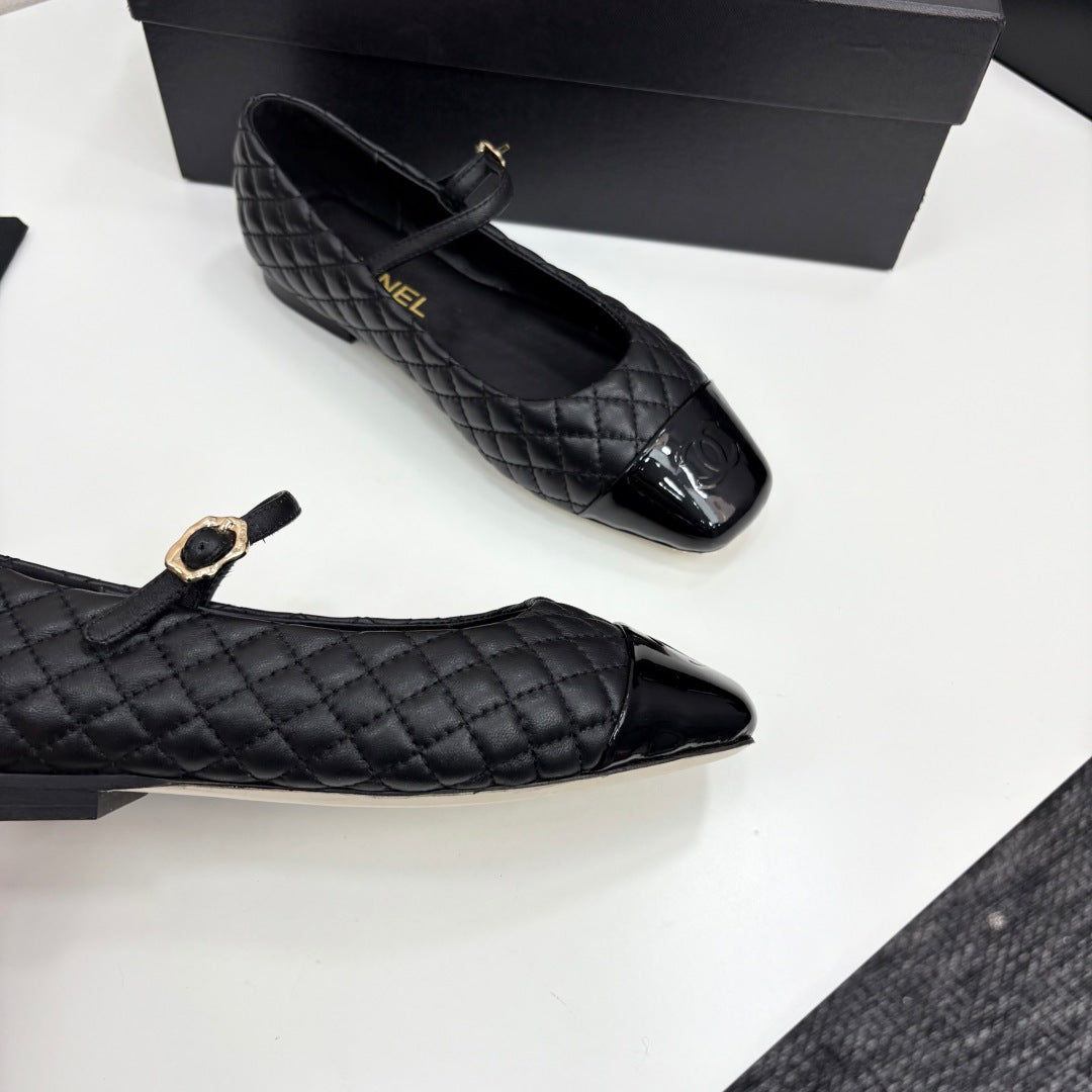 CC 25 Cap-Toe Quilted Mary Janes Black Sheepskin 352462