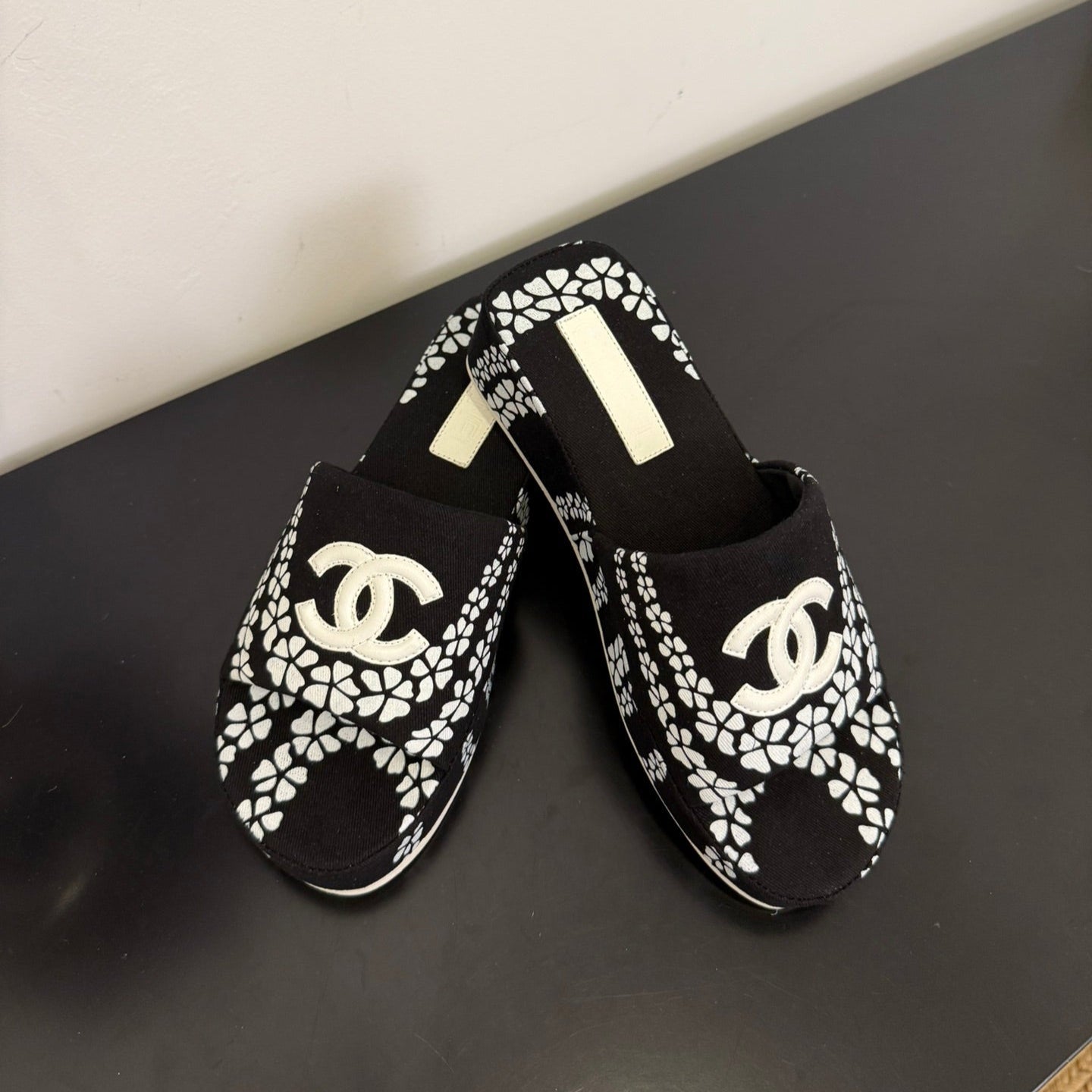 CC 25 Flower Slippers Black Fabric 330771