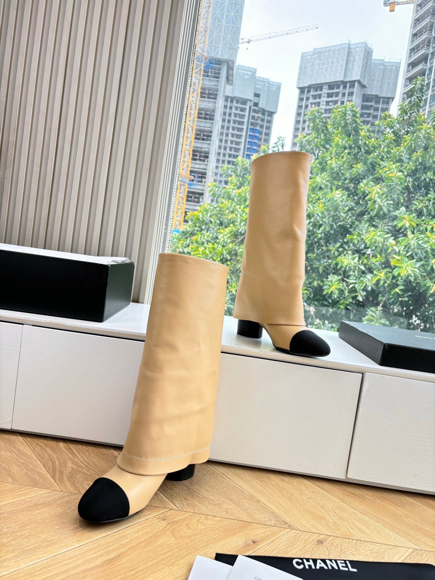 CC 25 High Boot Beige Calfskin Black Grosgrain 430337