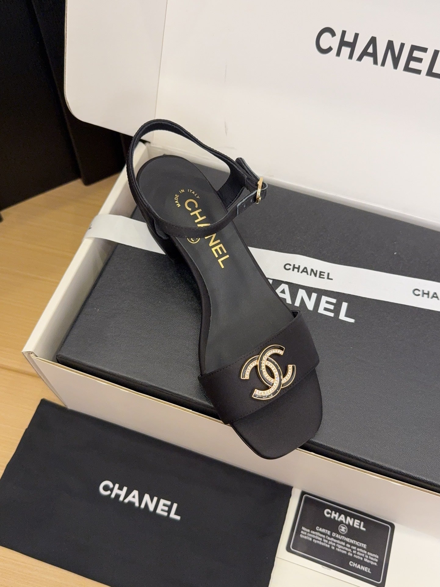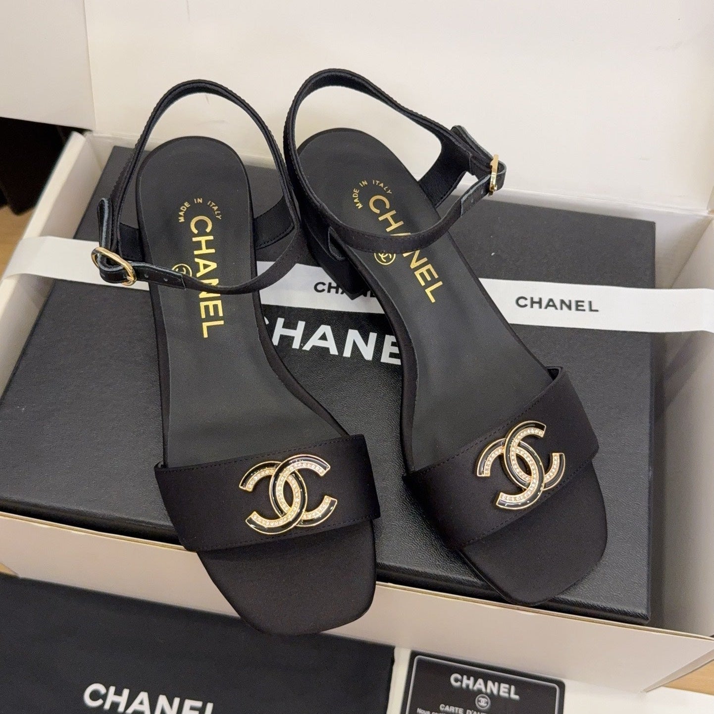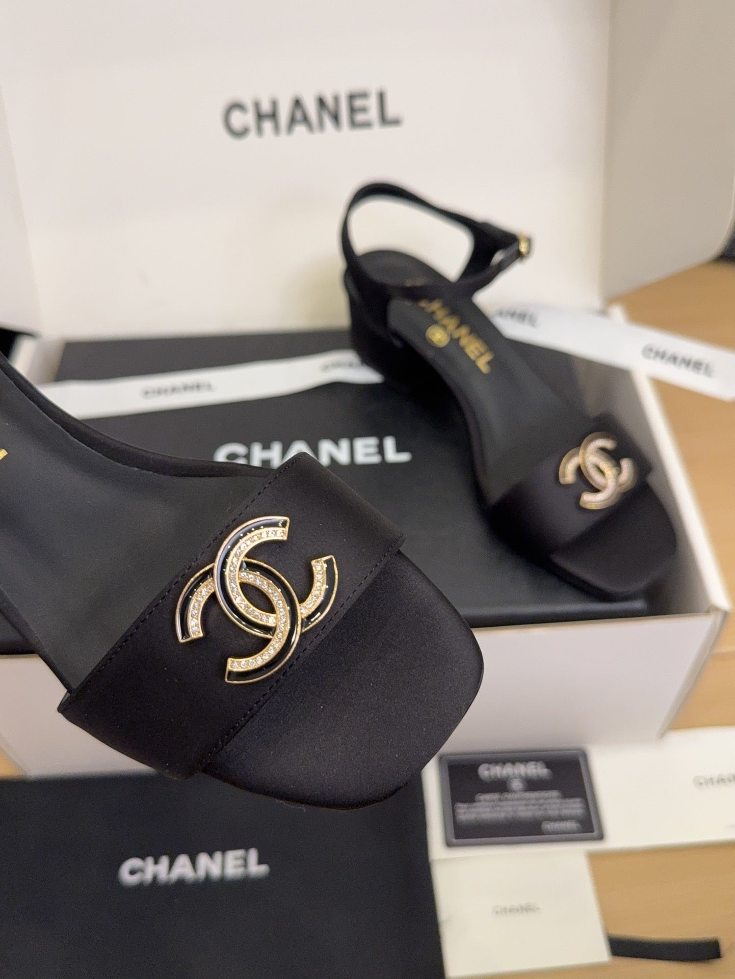 CC 25 High Heels 40 Sandals Black Satin And Sheepskin Square Toe 277714