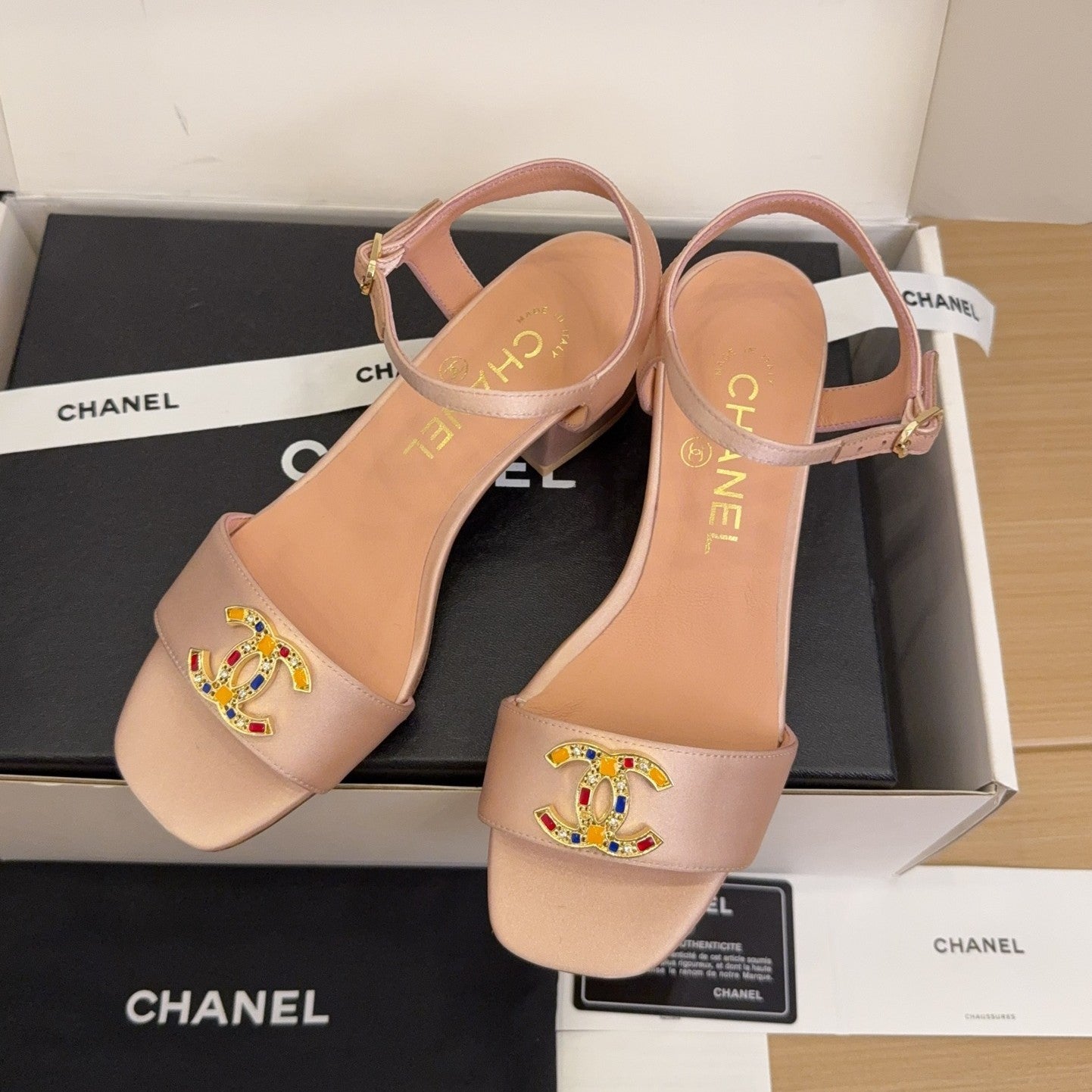 CC 25 High Heels 40 Sandals Salmon Satin And Sheepskin Square Toe 277712