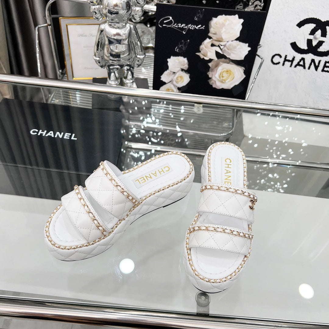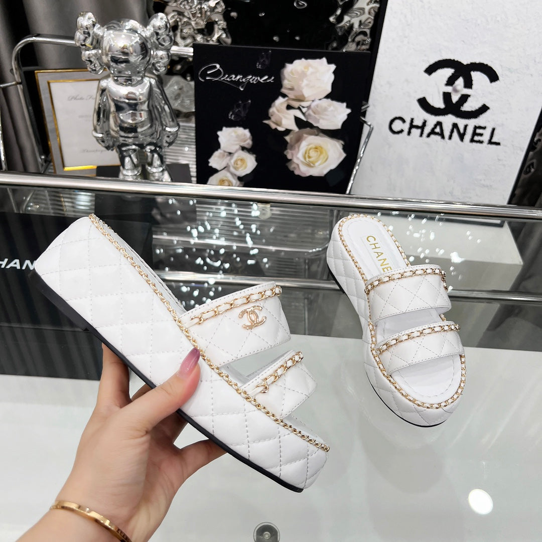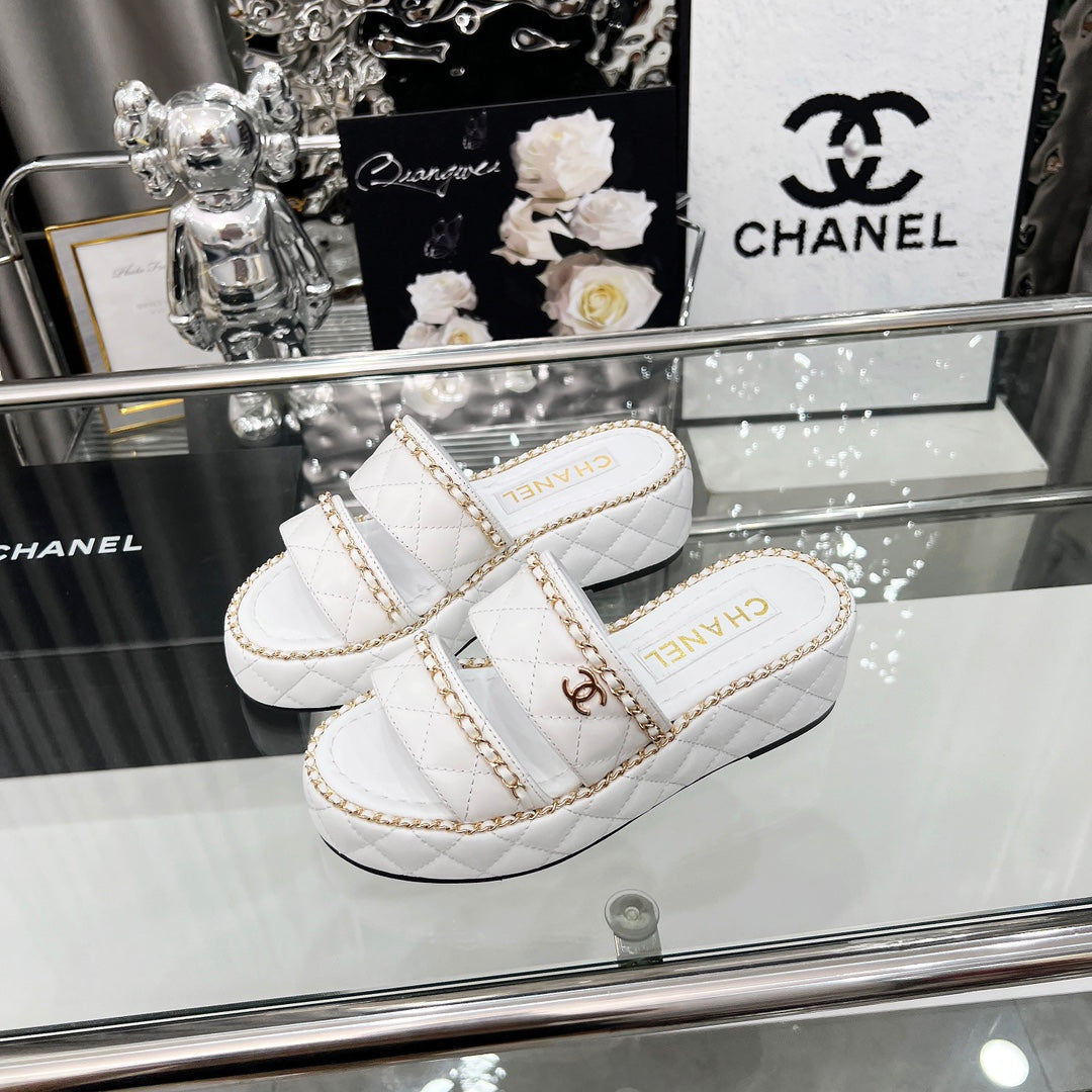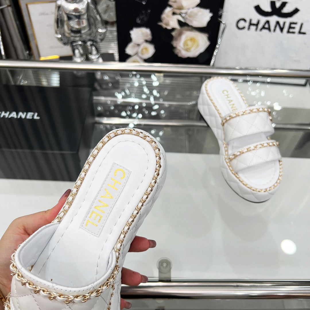 CC 25 Slide Leather Chain 6cm White Lambskin 338659