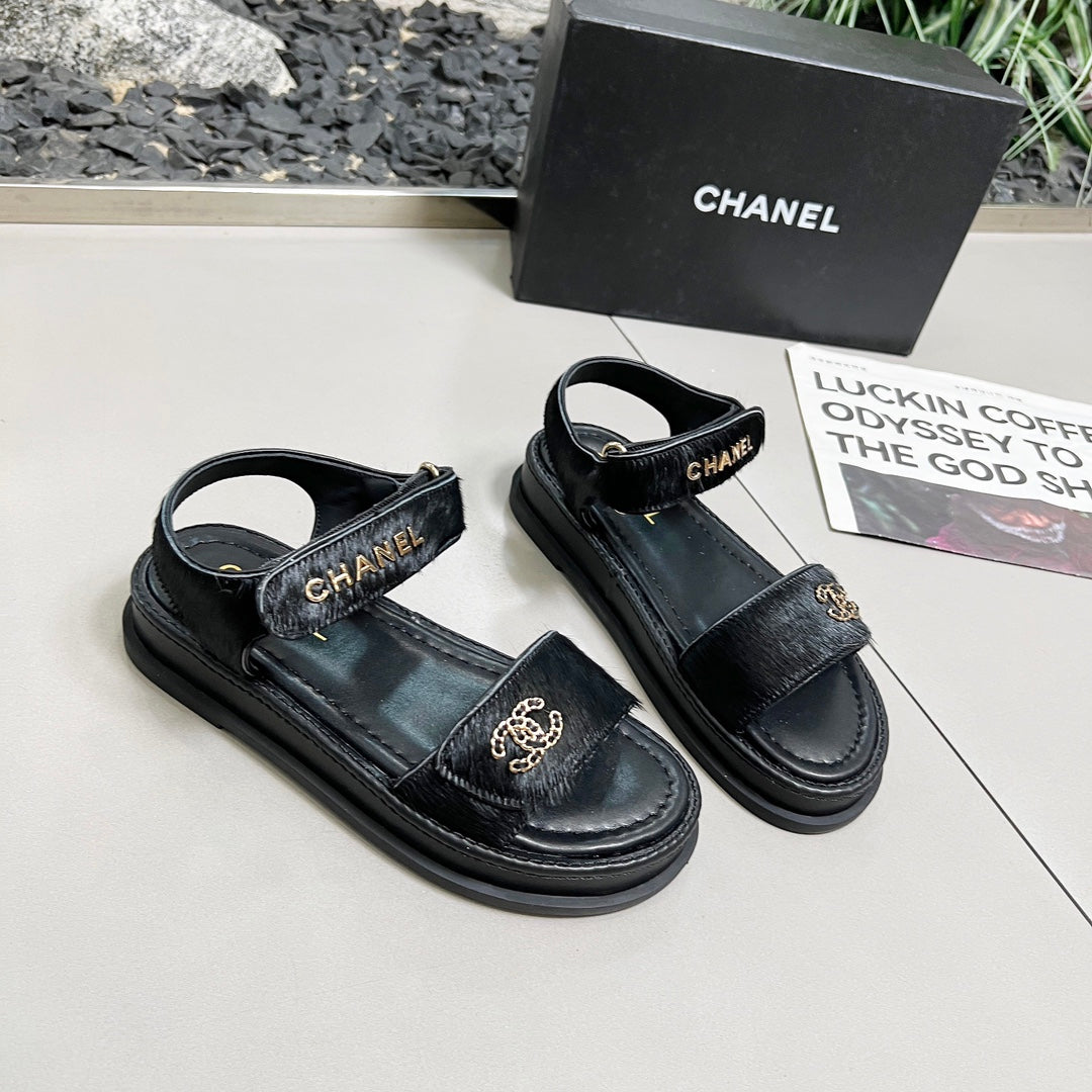 CC 25A Sandals Black Horse Fur Leather 338606
