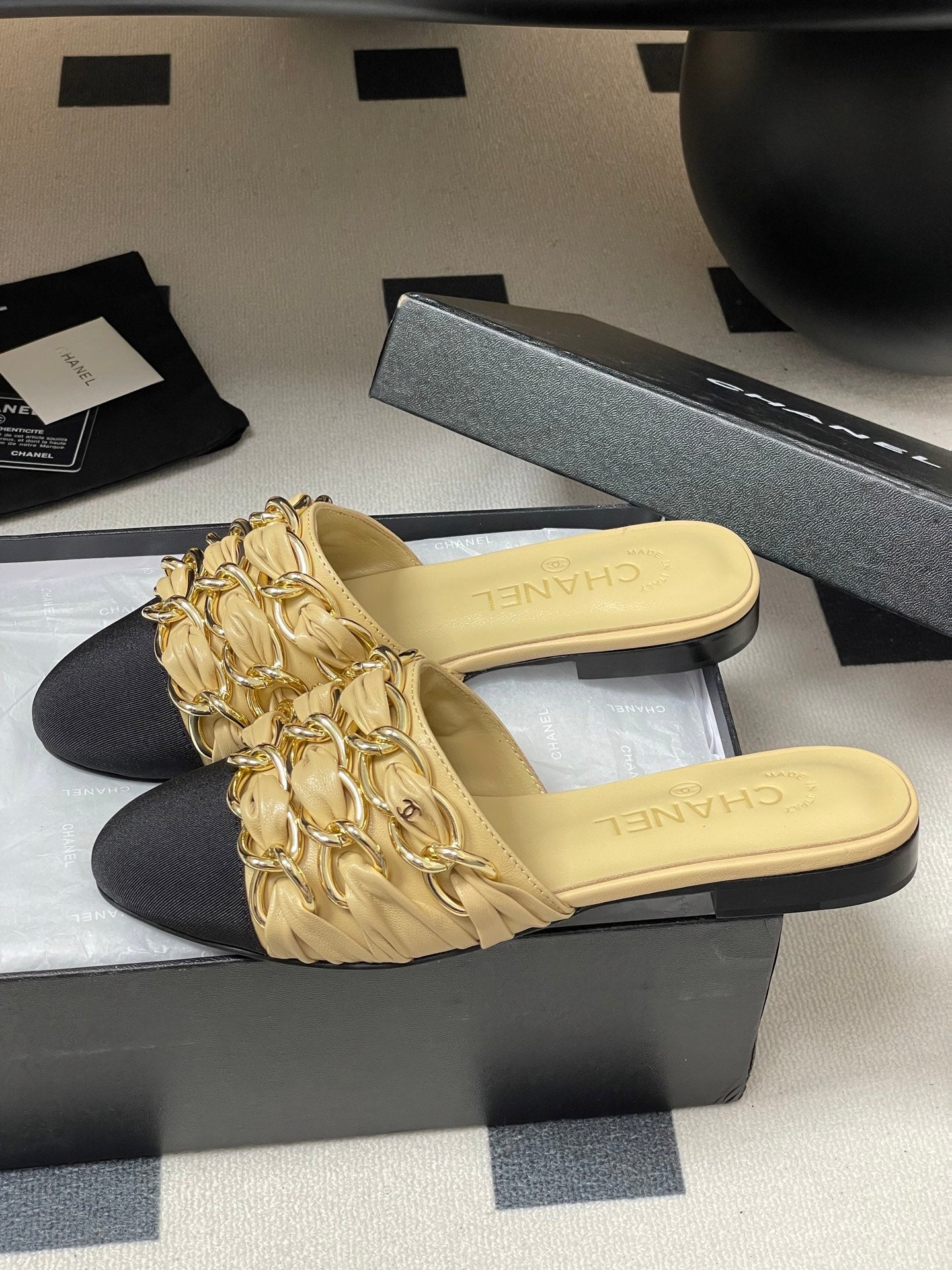 CC 25B Chain Closed Toe Flat Mule Beige Sheepskin 393888