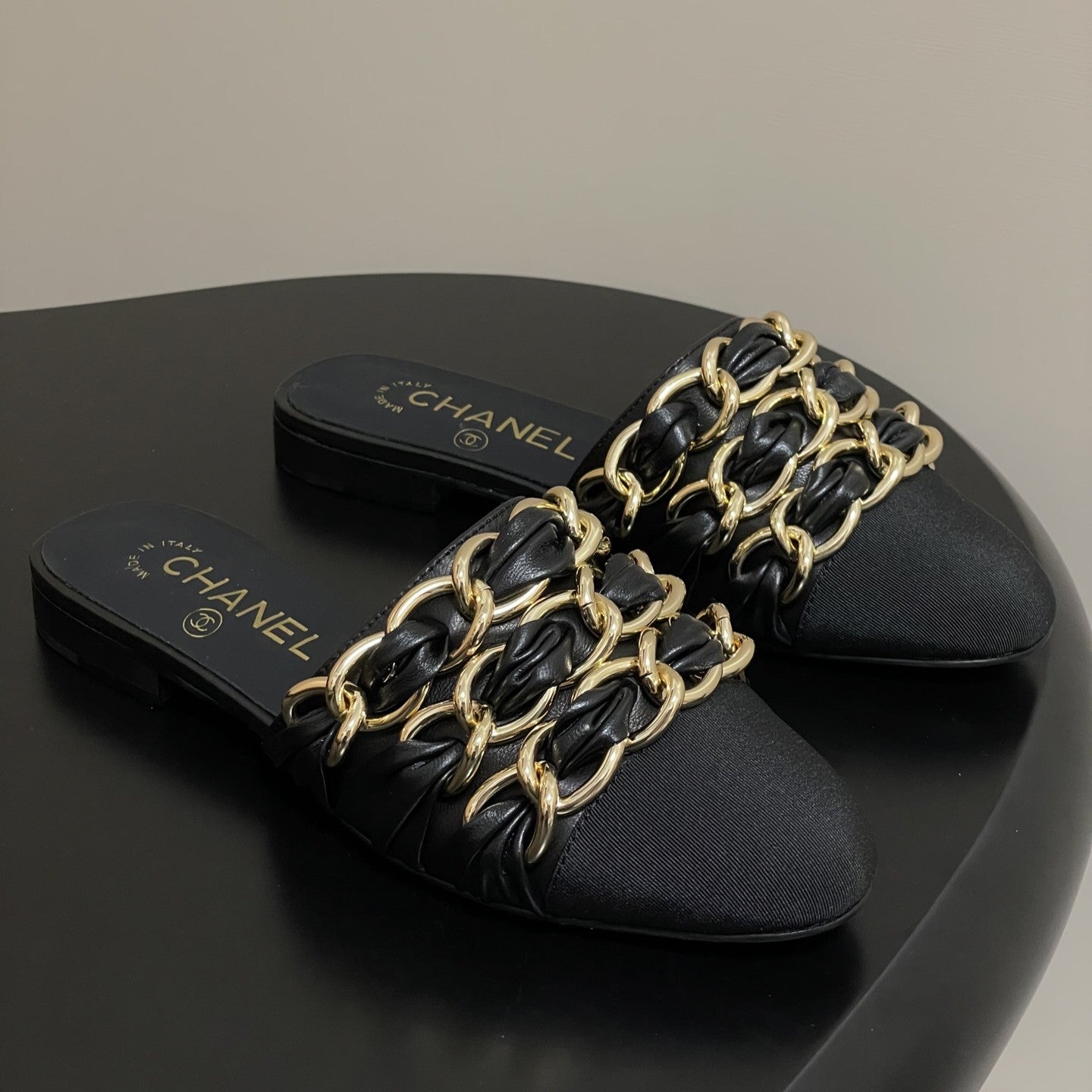 CC 25B Chain Closed Toe Flat Mule Black Sheepskin 393890