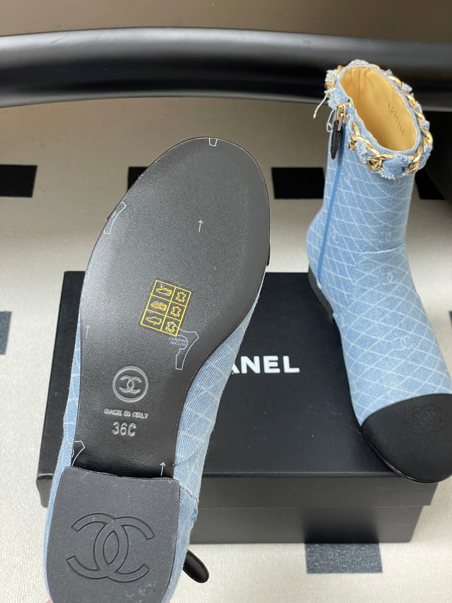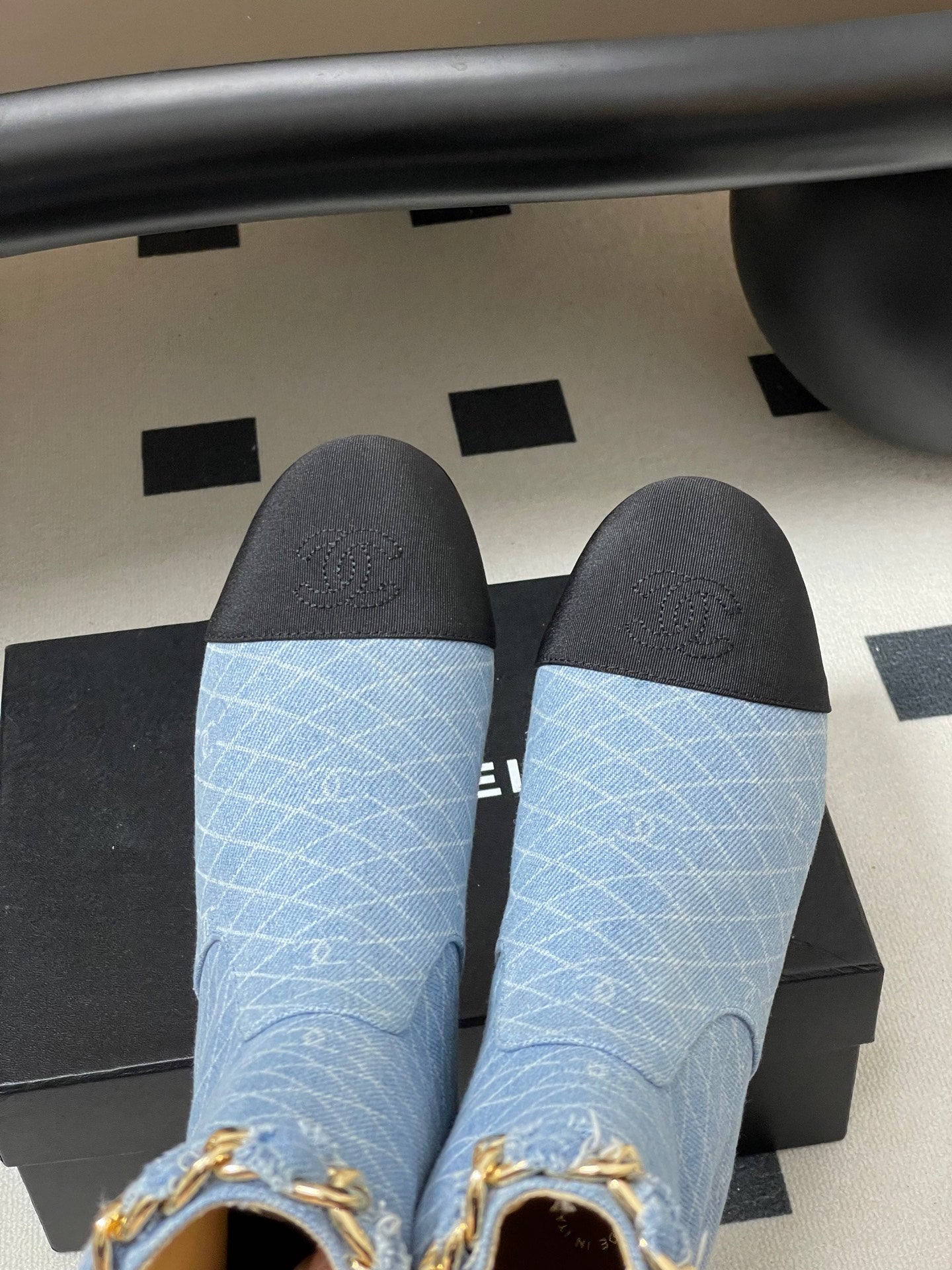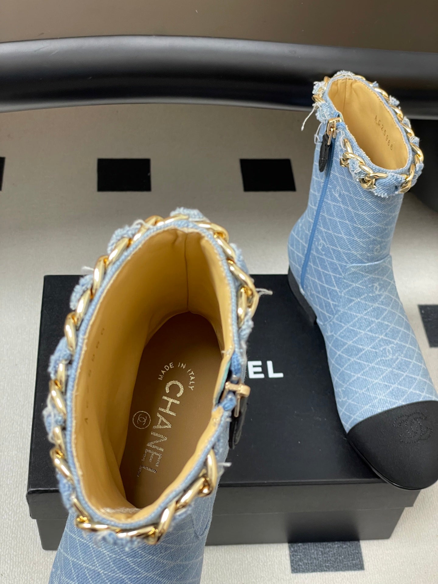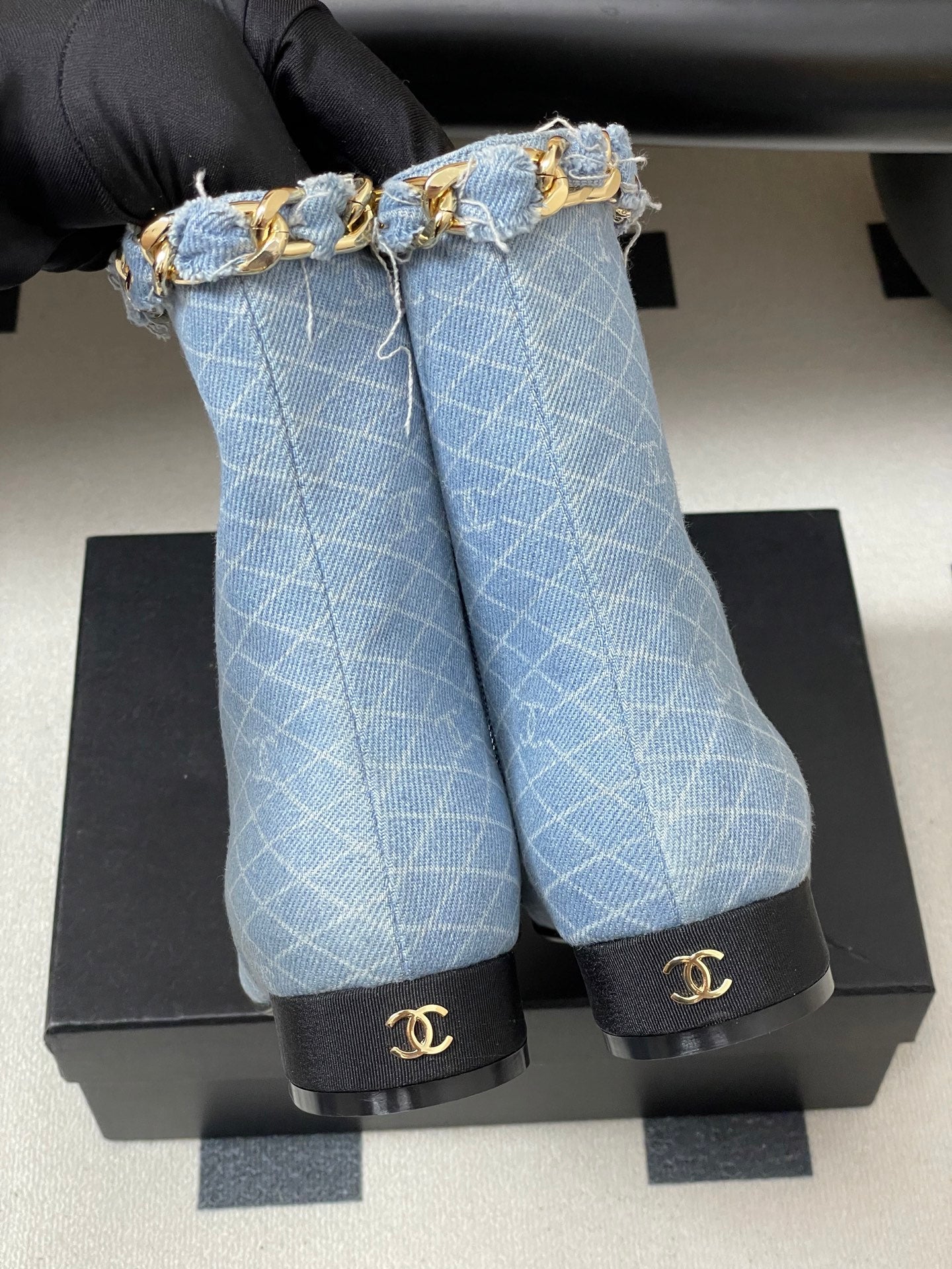 CC 25B Chain Short Boot 25mm Black Light Blue Denim 423151