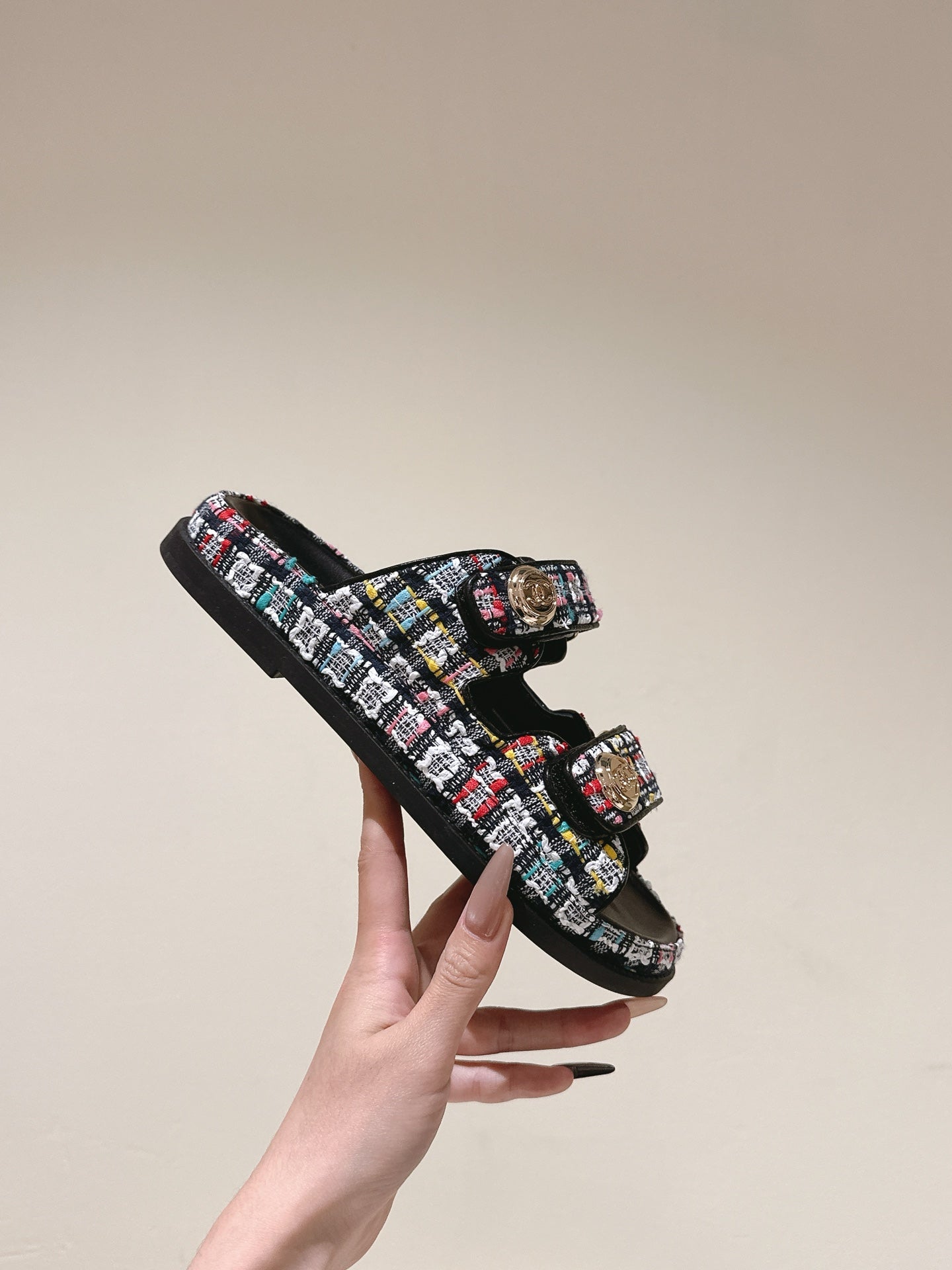 CC 25C Dad Sandals Mule Black Colorful Tweed 462230