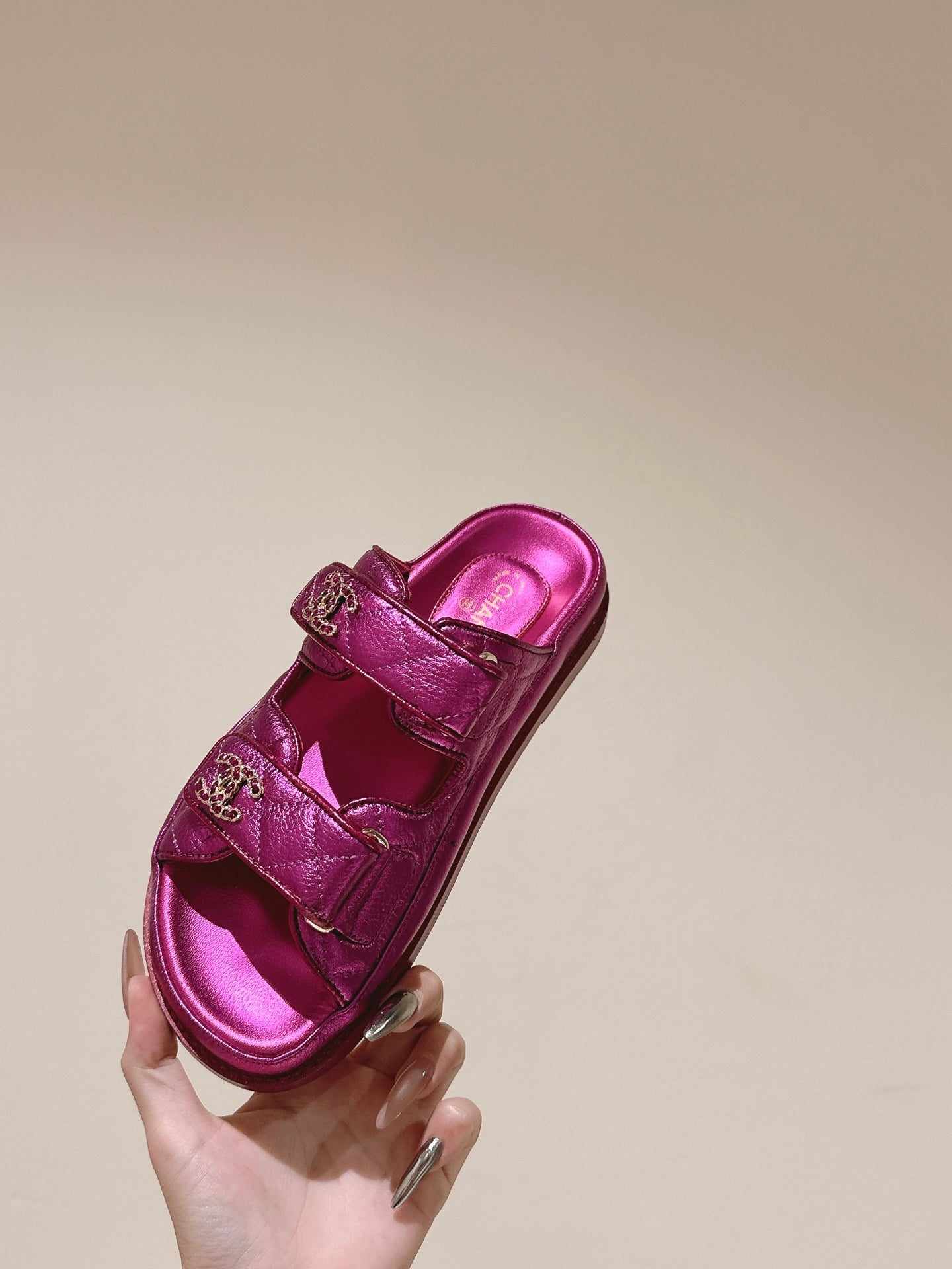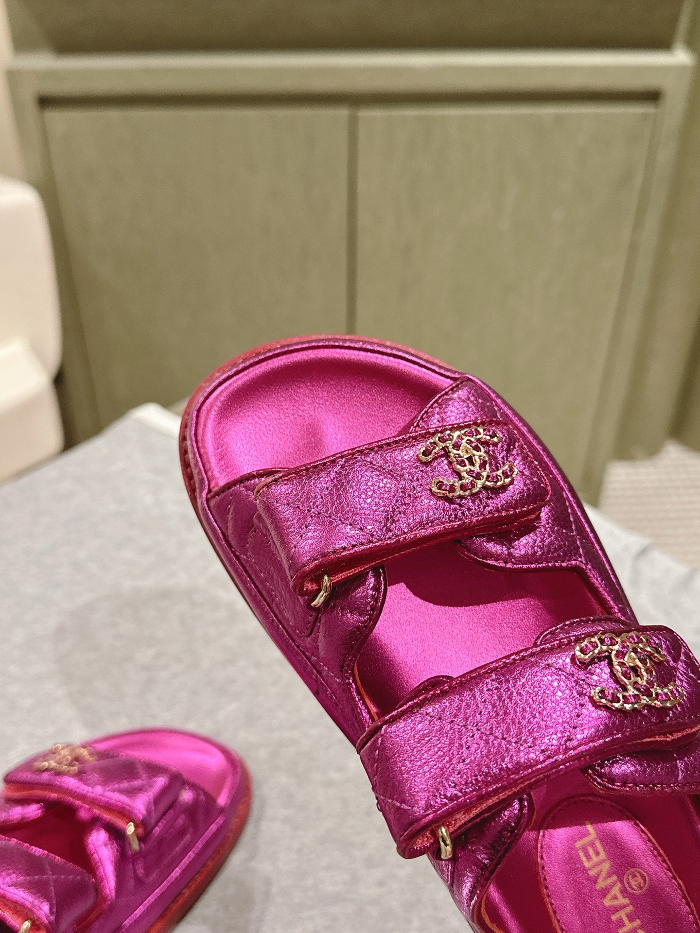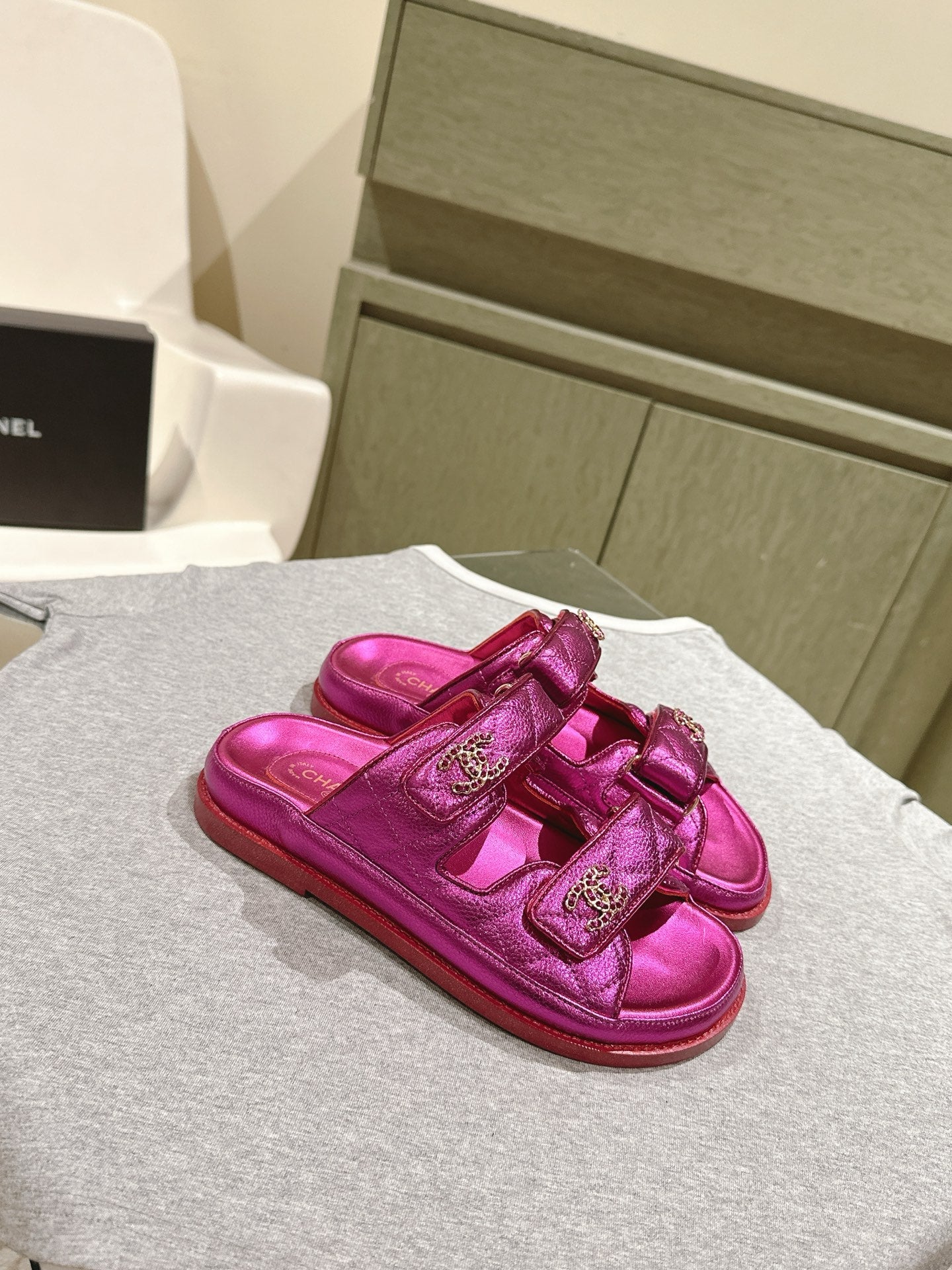 CC 25C Dad Sandals Mule Pink Metalic Grained Calfskin 462217
