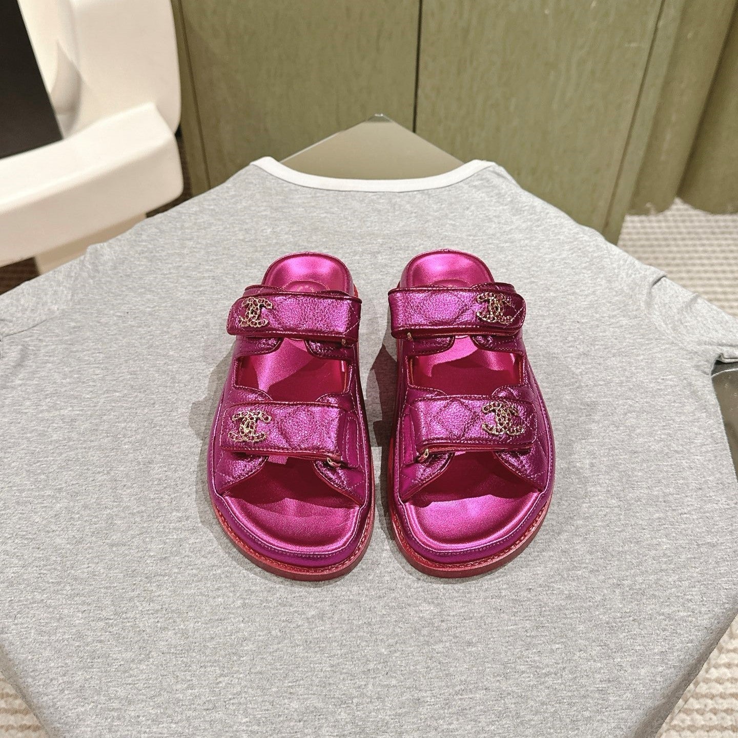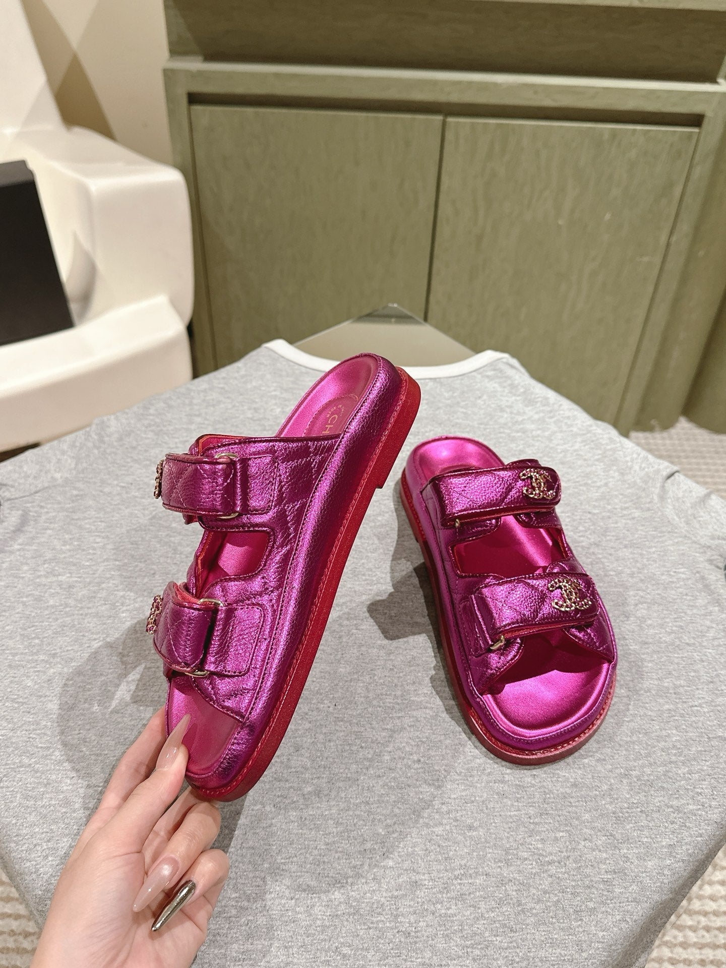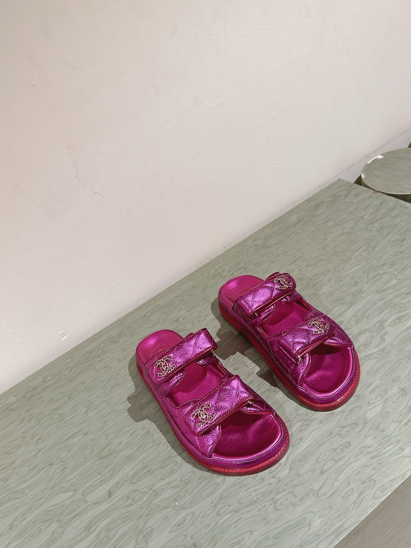 CC 25C Dad Sandals Mule Pink Metalic Grained Calfskin 462217