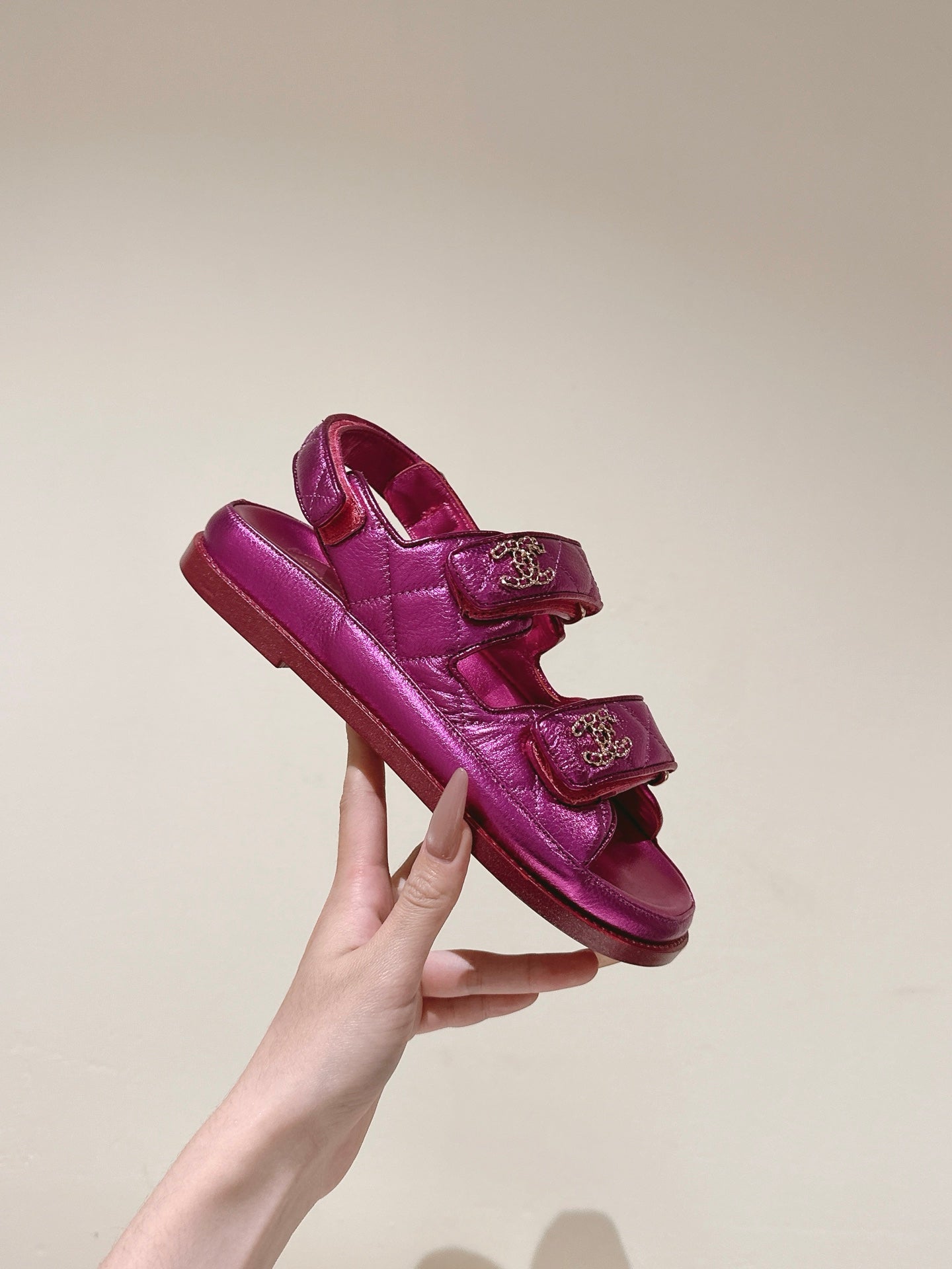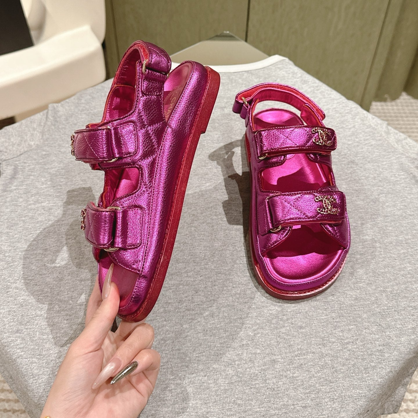 CC 25C Dad Sandals Pink Metalic Grained Calfskin 462233